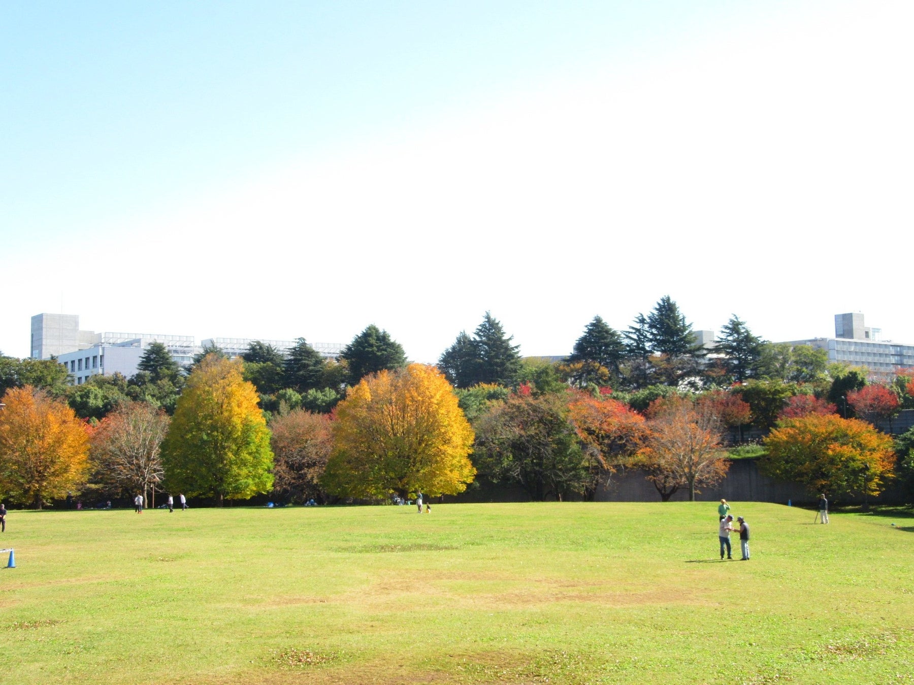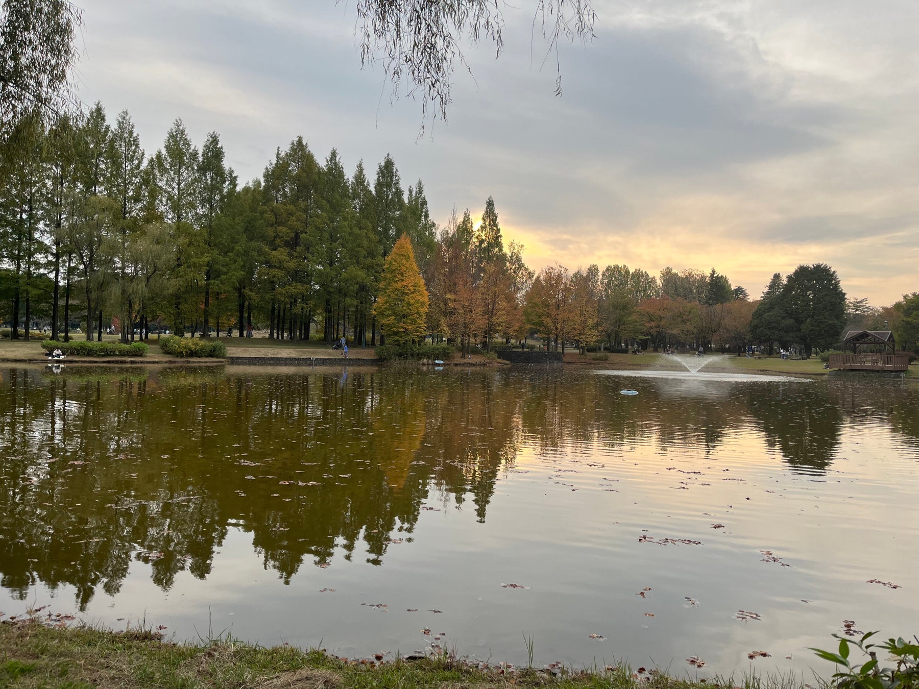 米軍から返還されたジョンソン基地跡地を活用して開園した公園です。園内には2つの池を結ぶせせらぎや樹林、緩やかな起伏のある芝生広場や自由に遊べる多目的広場などがあり、都市の緑のオアシスとして親しまれています。池に面した木々が色づく秋の景観がおすすめです。