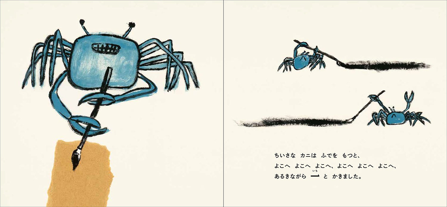 ちいさなカニは よこへ よこへ よこへ、よこへ よこへ よこへ、あるきながら「一」とかきました。