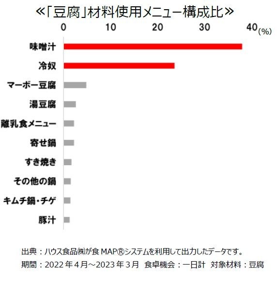 豆腐は手軽に摂取できる植物性タンパク質として人気を集めており、直近はコロナ前と比較して国内市場規模の水準が上がっています。また味噌汁の具、冷奴など多くの日本人にとって身近で馴染みのある食材ですが、メニューに偏りがあるため食べ方は固定化されています。