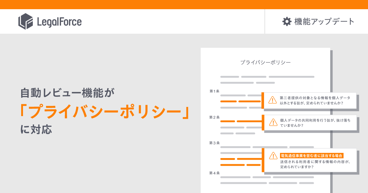 AI契約審査プラットフォーム「LegalForce」、自動レビュー機能が「プライバシーポリシー」に対応開始
