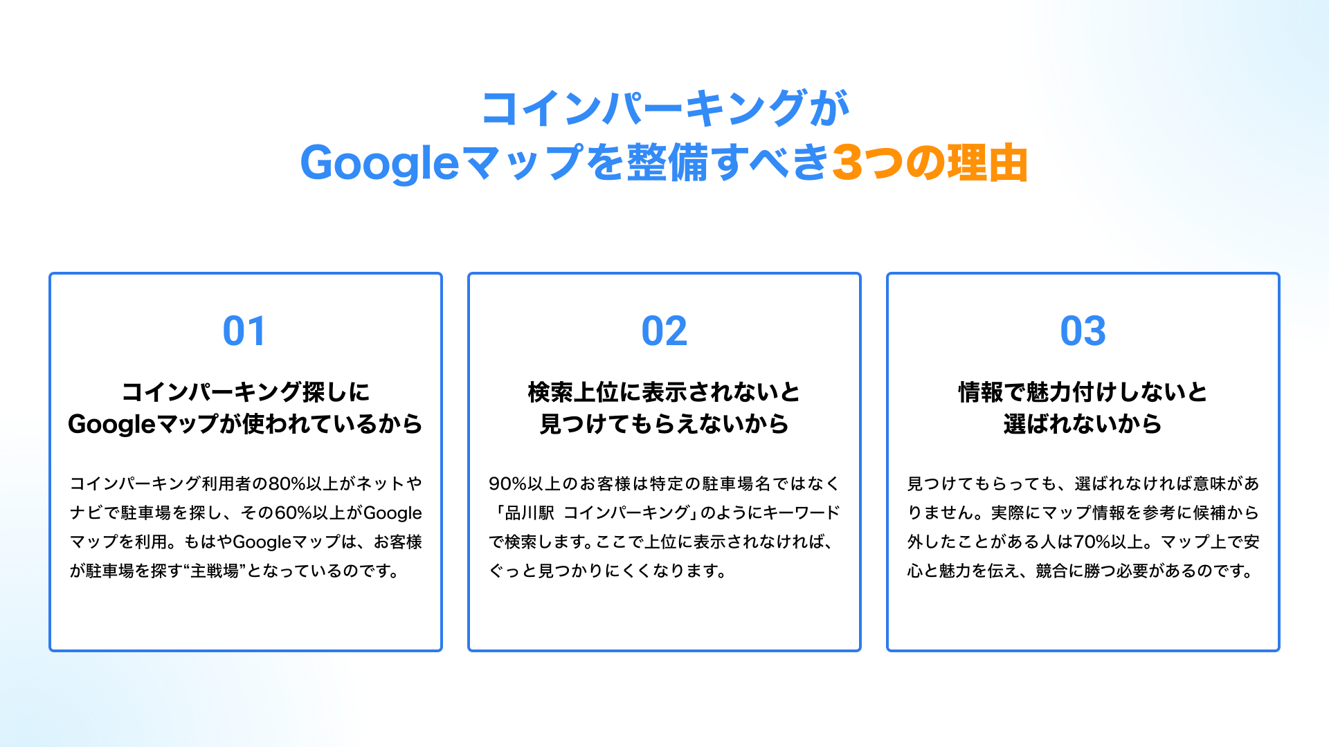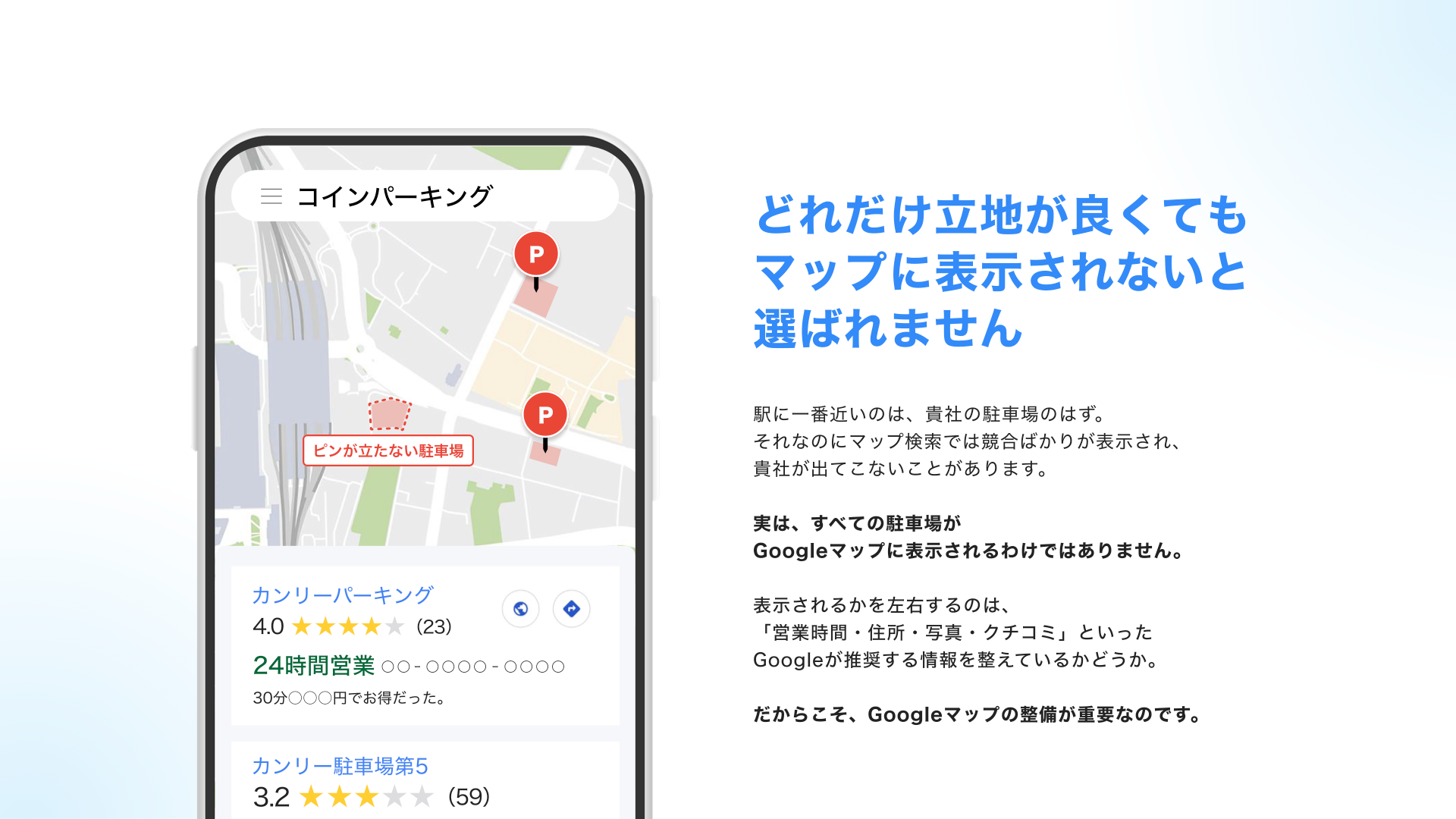 近年、お客様の行動は大きく変化しており、今やGoogleマップが駐車場を探すための”主戦場”となっています。