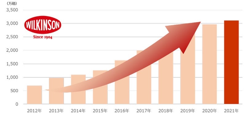 【参考資料】100年を超えるロングセラーブランド「三ツ矢」「ウィルキンソン」両ブランドの2021年の年間販売数量が過去最高を更新「ウィルキンソン」はメガブランドと位置付けられる3,000万箱を突破