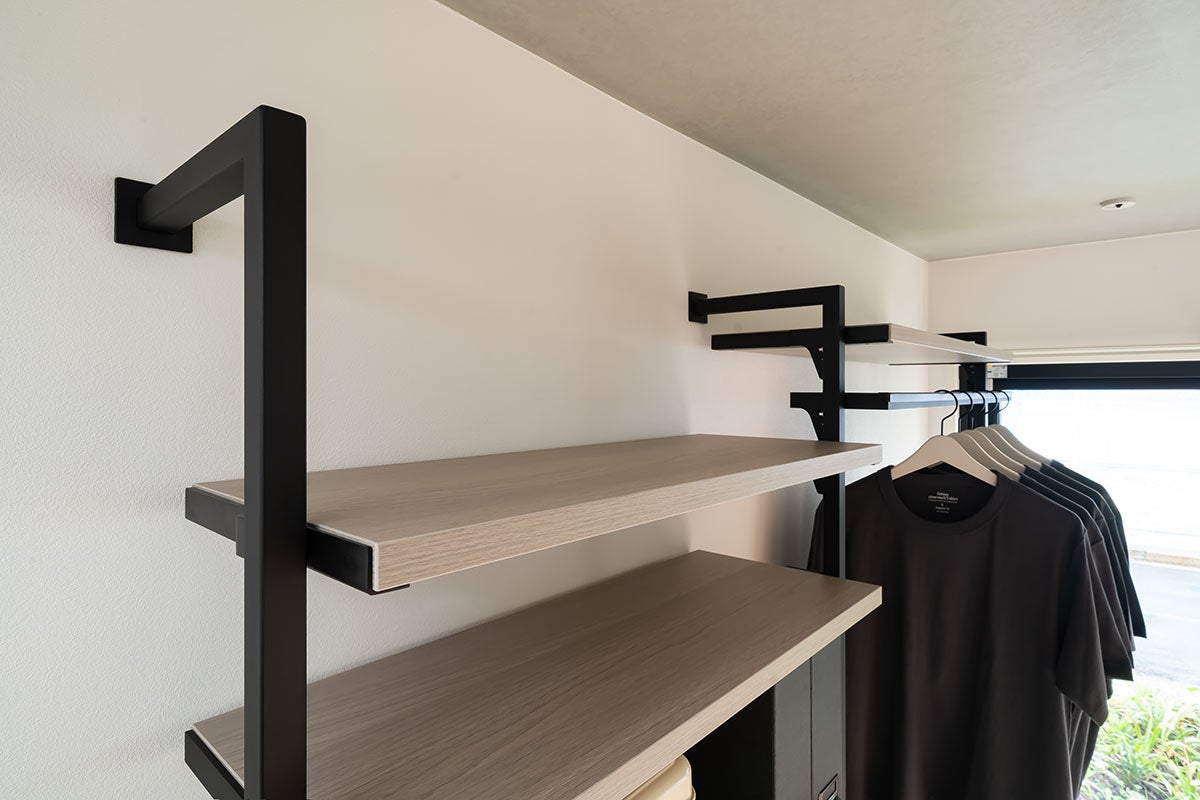 ポールのスリットや、壁固定のネジなどが正面から見えない工夫で、見た目がスッキリ。