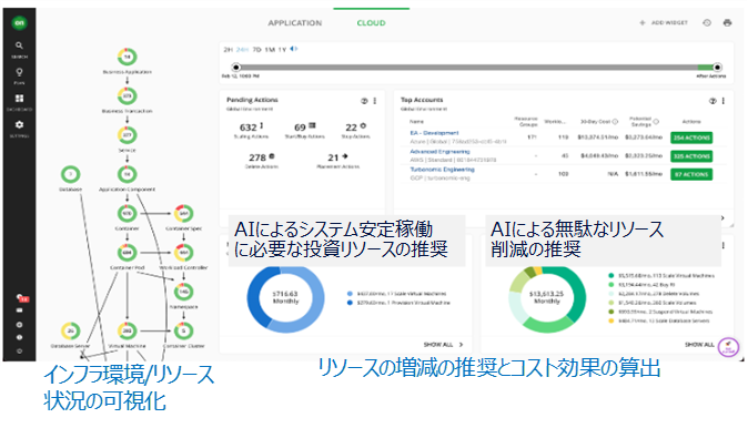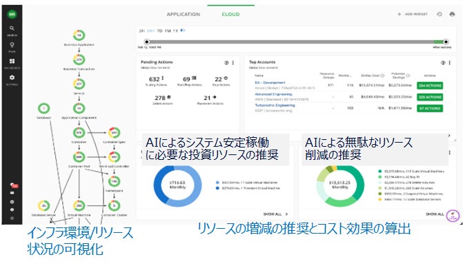 NECは、NEC自身をゼロ番目の利用者(クライアント)として最先端のテクノロジーを実践する「クライアントゼロ」を推進して製品を自ら活用し、そこで得た、いい面や苦労した点などの体験を交えてお客様に提供しています。今回活用するIBM Turbonomicはクラウド・コンテナ・仮想サーバーのCPU/メモリー/ストレージ/DBサイズなどをフルスタックに把握することができます。その使用状況から無駄なリソースの削減や不足しているリソースへの投資などの推奨アクションを提示します。これによりリソース上で稼働しているアプリケーションのパフォ−マンスなどの性能劣化を防止することに加え、最も適したリソース環境を簡単に維持することもできるようになります。今般、NECの社内IT環境に当製品を適用する実証実験にて、最大33%を超えるクラウドリソースを削減見込であることを実証しました。この成果に基づき、2023年10月から社内ITの本番環境に当製品を順次導入することを決定しました。