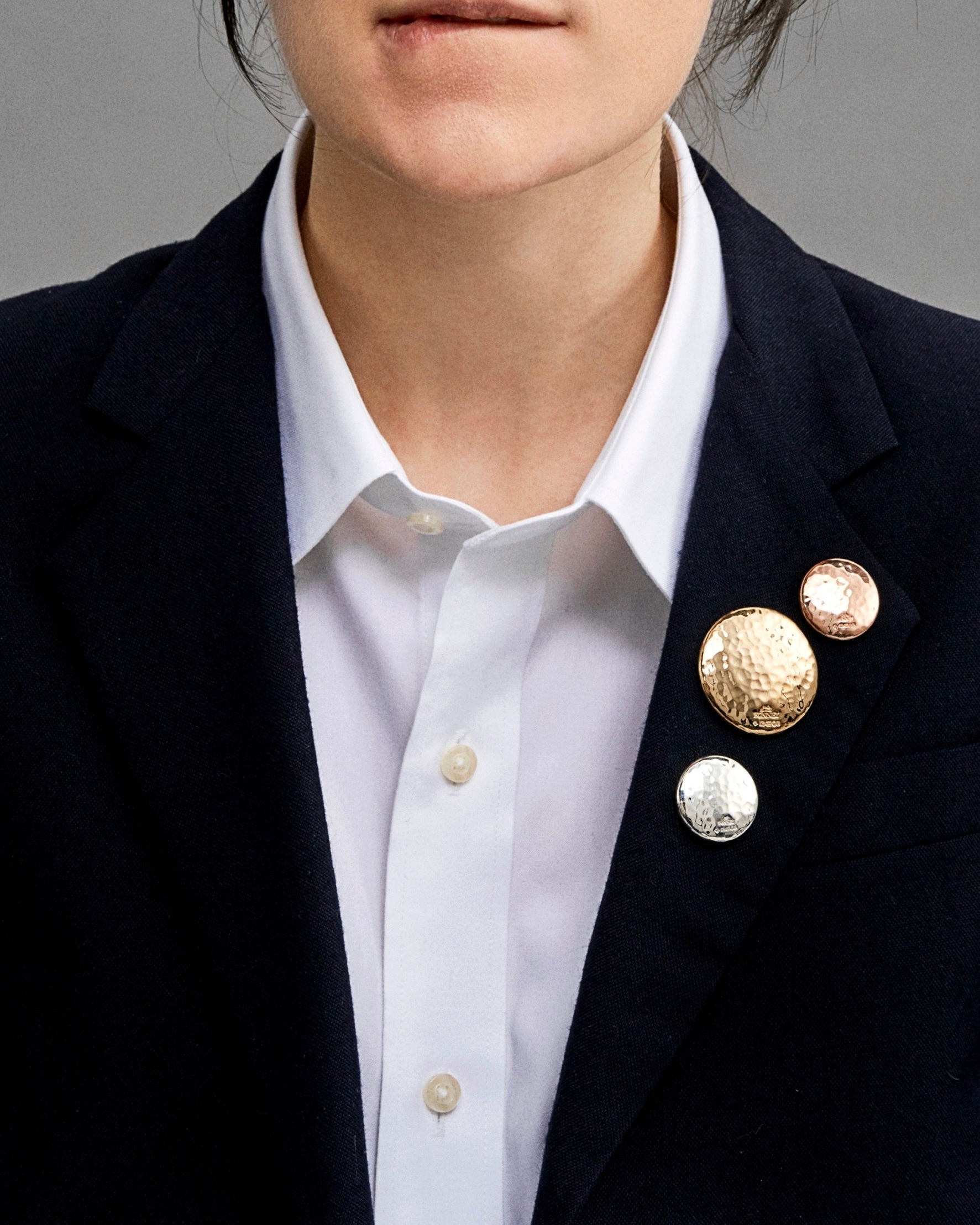 スタッズやバッジなどイギリスのストリートカルチャーと関わりの深いアイテムにシルバー、ゴールドといった貴金属を用いた作品を発表。