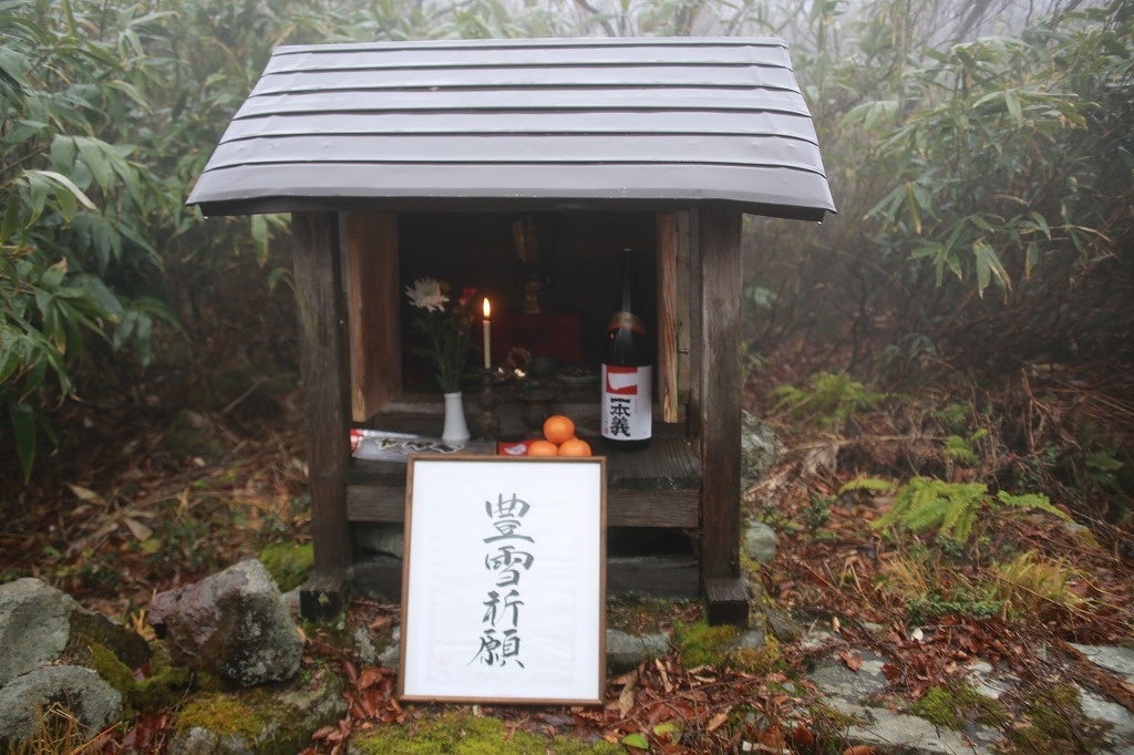 スキージャム勝山では、12月17日(土)のスキー場営業開始に向け、今シーズンの安定した降雪を願い、法恩寺山(スキージャム勝山のゲレンデが位置する山)山頂付近にある祠にて、スキー場従業員による祈願を執り行います。祈願は越前禅定道の拠点でもあった法音教寺跡の祠にて毎年実施しており、報道関係者の皆様にその様子をご覧いただく機会を設けております。積雪祈願当日、ご参加の方はお車にてスキージャム勝山のイリュージョンサイトまで送迎させていただきます。その後、イリュージョンクワッドリフトに乗車し、標高1,320mまで登ります。リフト降車後は、徒歩にて標高1,357mの法恩寺山山頂まで登り、その先にある法音教寺跡の祠を目指します。間近で積雪祈願をご覧いただけるこの機会に、是非ご参加ください。