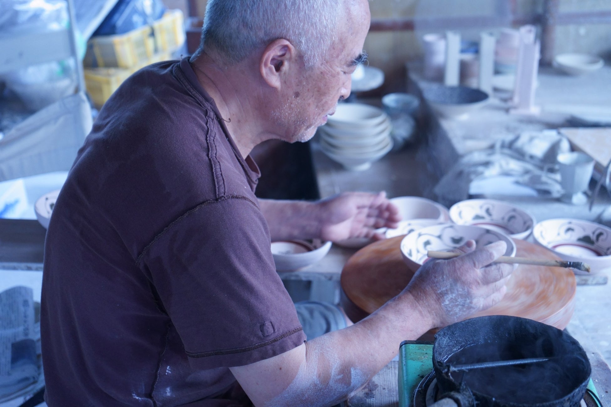 素朴な温もりがある作品を作られる山中窯。優しい染付けの中に独自性と実用性が
