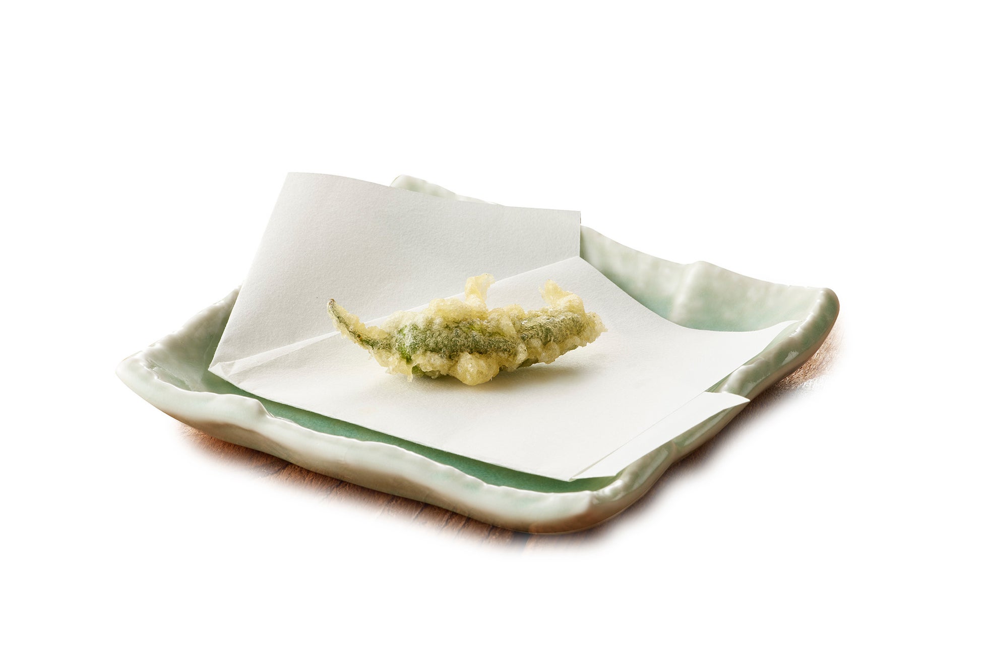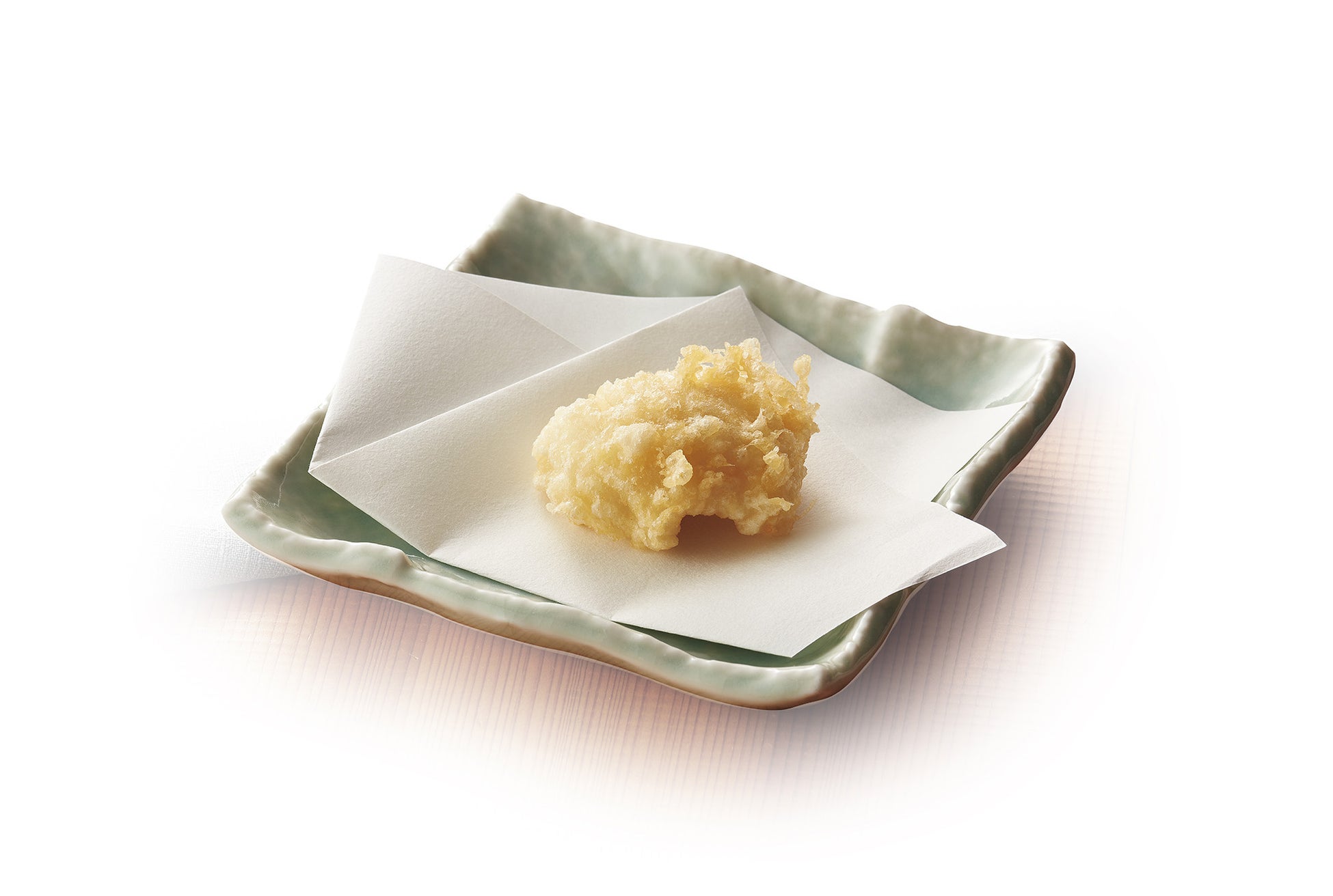 天ぷらにすることで果肉がとろけるようなやわらかい食感となります。肉厚でとろけるような口あたりがてんや特製のたれとの相性抜群です。紫なすとはちがった、やわらかくとろ~りとした食感をお楽しみください。