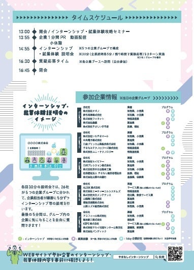 参加企業及びインターンシッププログラム内容はチラシ及び下記ホームページに掲載しています。