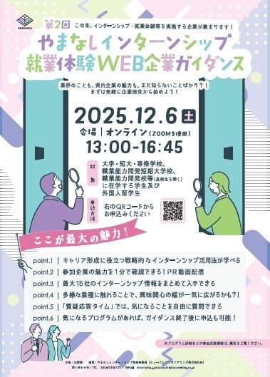【12月6日開催・オンライン】「第2回 やまなしインターンシップ・就業体験WEB企業ガイダンス」を開催します!