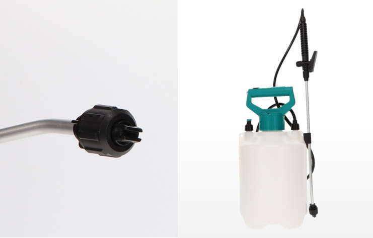 ②除草剤専用ノズルは、扇形噴口で散布幅が広く、広範囲へムラなく散布できます。