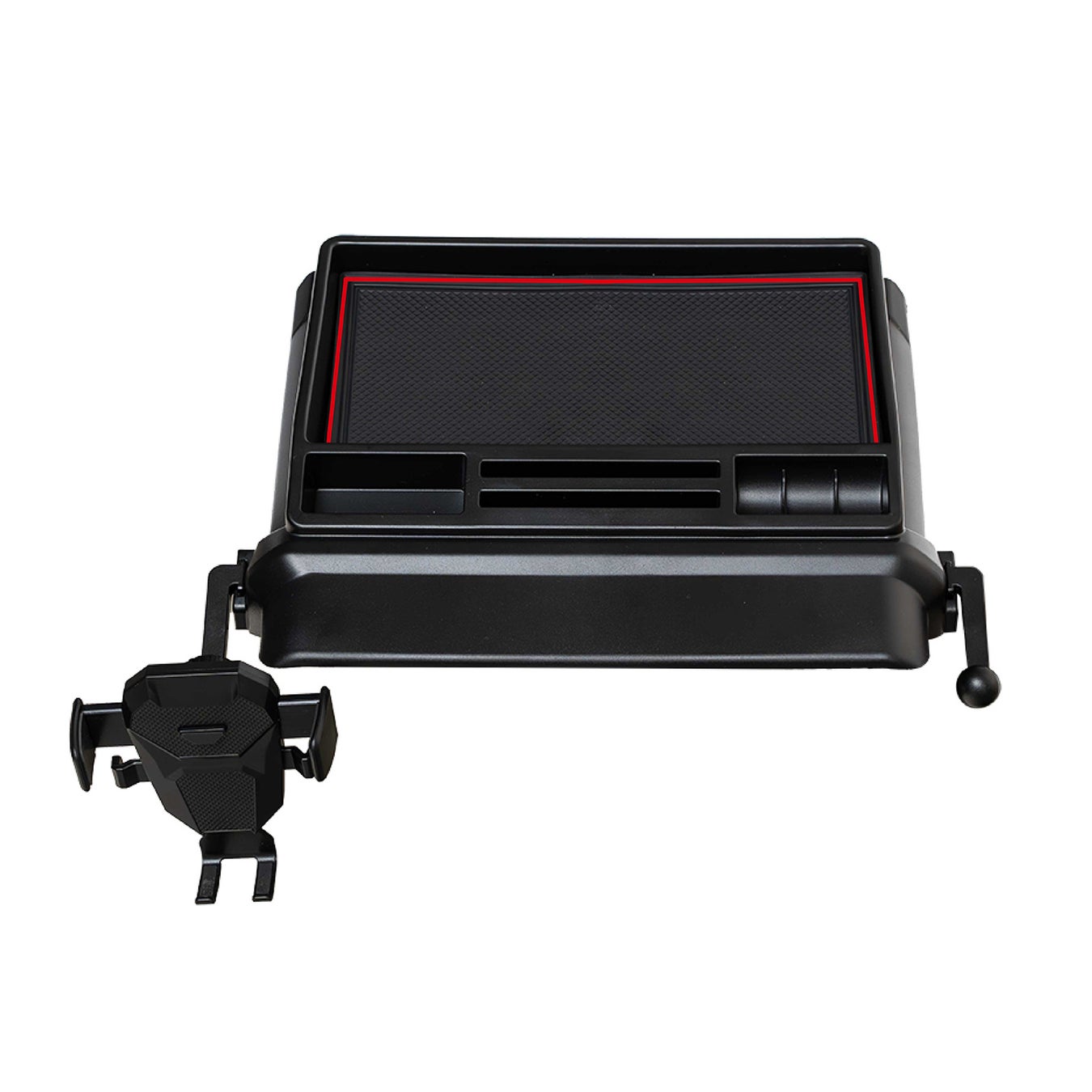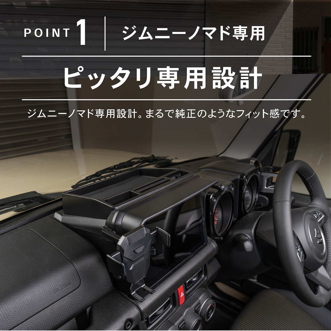【ジムニーノマド専用】カードや小銭など小物をスッキリ収納、ナビシェードもついたスマホホルダー付きコンソールトレイを発売。専用設計だから純正のようなフィット感。置くだけ簡単設置!自動車整備士監修で安心◎
