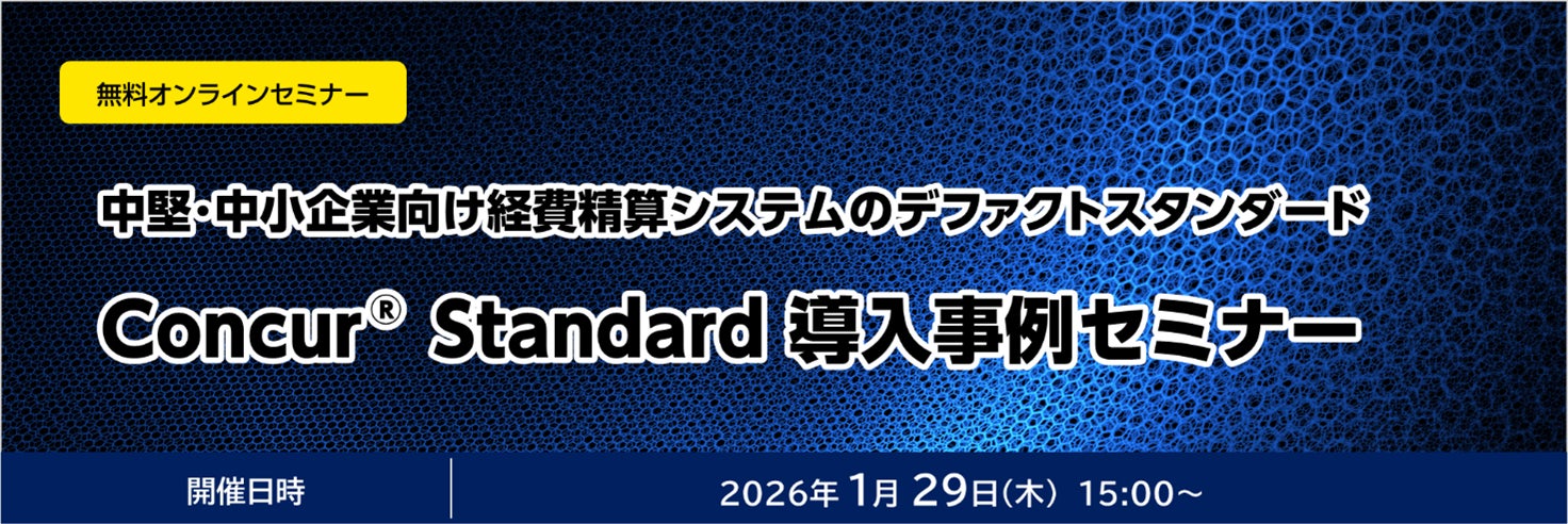株式会社ニーズウェル(本社:東京都千代田区、代表取締役社長 松岡元)は、2026年1月29日(木)15時より、無料オンラインセミナー「中堅・中小企業向け経費精算システムのデファクトスタンダード Concur Standard 導入事例セミナー」を開催します。