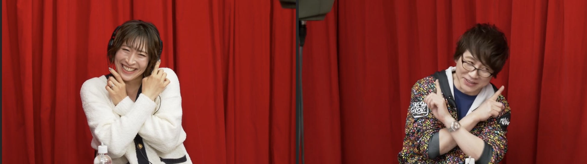 サンプルAは夫婦の食卓の様子。サンプルBはエプロン姿の妻に悶える旦那様の心の声。投票中には置鮎と名塚が自炊トークを繰り広げます。「料理は毎日する」という名塚。「常備菜とか作る。夜帰って料理する時間をなるべく短くしたいんですよ、子どもたちが待てないから」とこだわりを話します。一方の置鮎は「コロナ下で料理に目覚めた瞬間もあった。でも常備菜とかにチャレンジしようとしたけど、1、2回しかやらなかった。そしたら今では全然できなくなっちゃった」と大笑い。名塚も「やらないと忘れちゃいますよね!」と同意します。