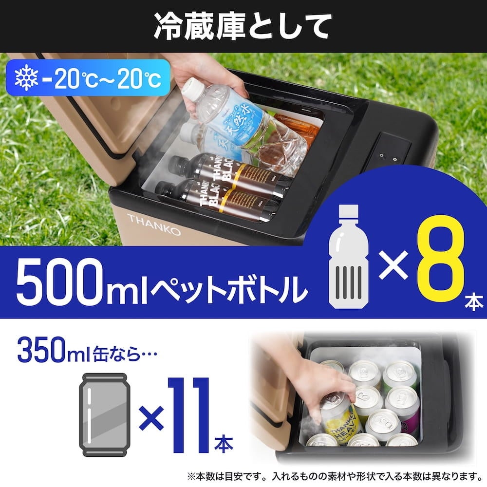 500mlのペットボトル8本、350ml缶11本収納可能。