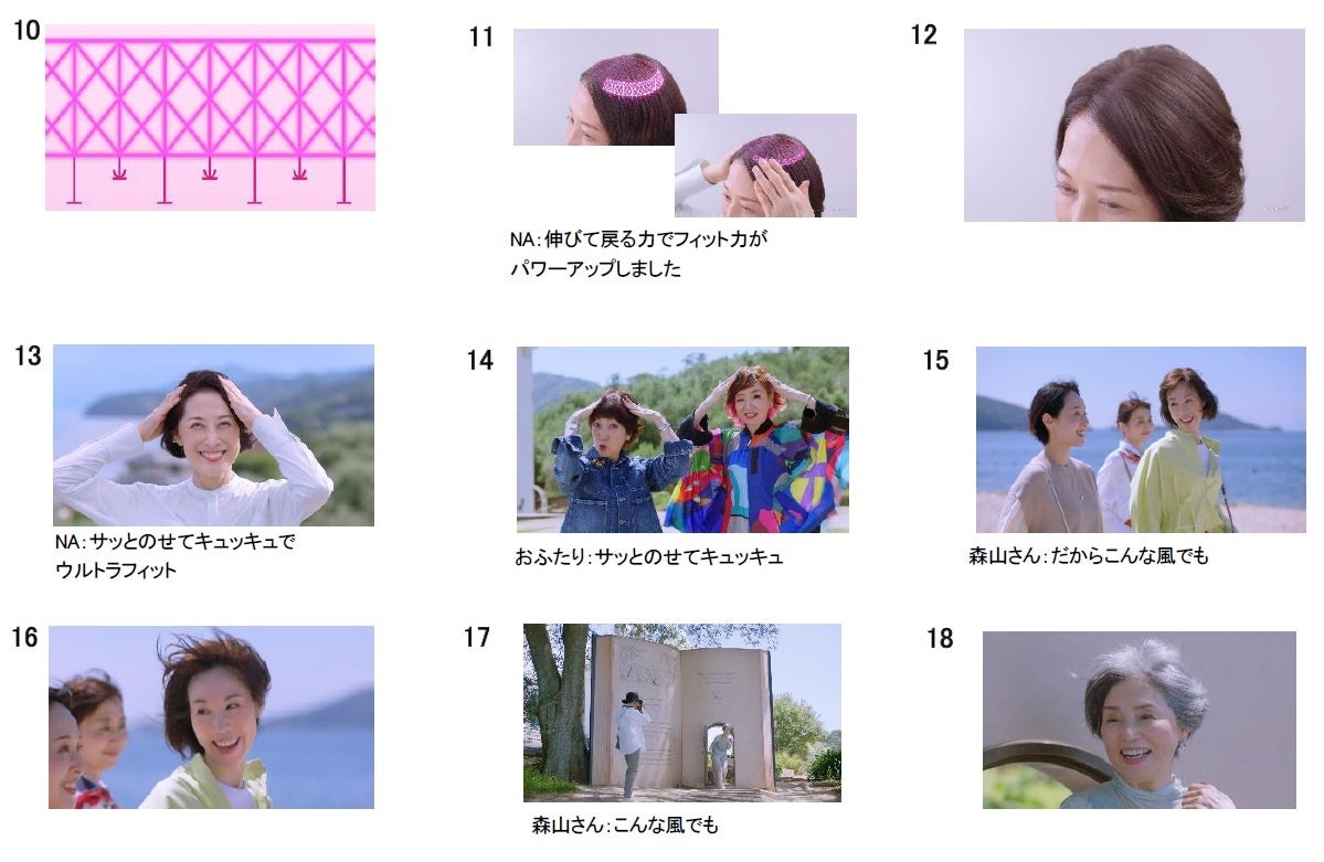 CMの見どころは、風が吹いても安心の『フィーリン ウルトラフィット』をつけて、写真撮影を楽しむシーンです。今回おふたりがやってきたのは、映画の舞台となり、SNSなどでも人気の「風車の丘」。あえて、強い風が吹き続ける丘の上で、森山さんと清水さんが『フィーリン ウルトラフィット』のフィット力を紹介します。強風の中、美しいヘアスタイルでモデルが登場。「こちらをご覧ください」という森山さんの紹介があると、モデルが髪から『フィーリン ウルトラフィット』を外します。自然で美しく、そして風にも強いウィッグに、清水さんからは「まさにウルトラフィット!」というコメントが。