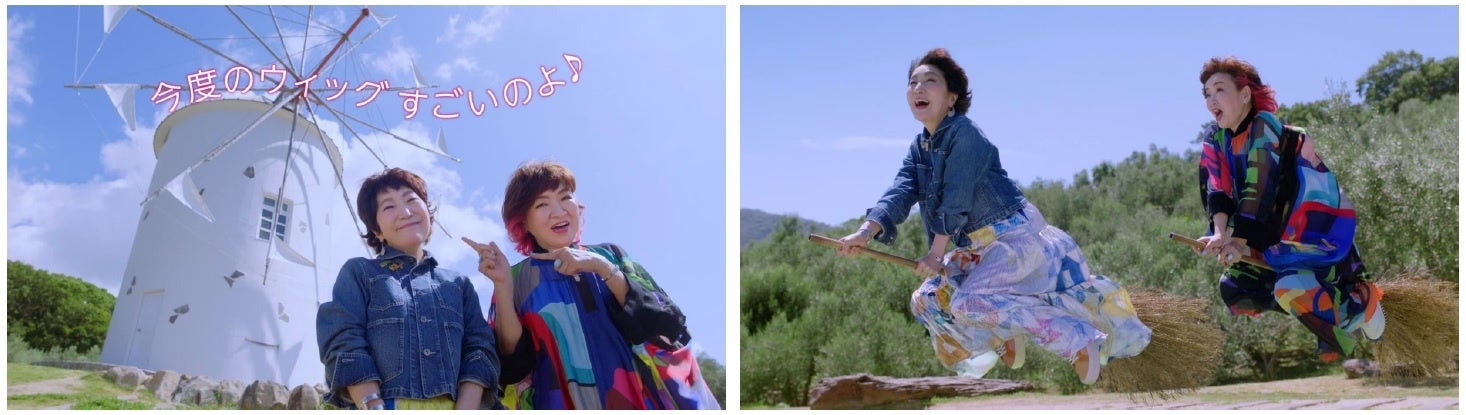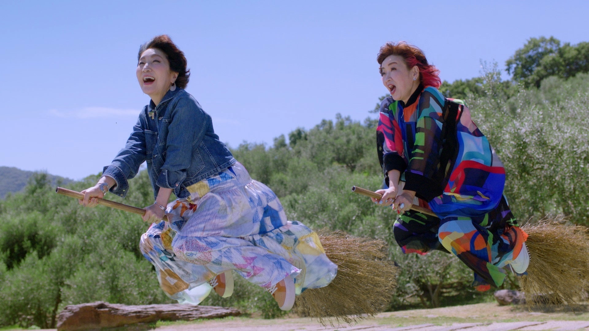 森山良子さん、清水ミチコさんが、風車の丘でほうきに乗ってジャンプ!