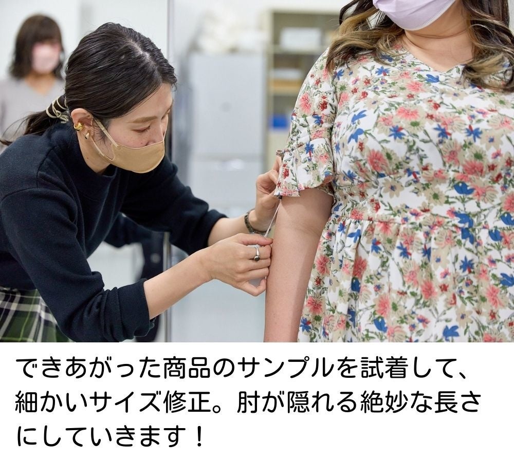 着丈は長すぎず短すぎず膝がしっかり隠れる丈、袖丈も肘が隠れる絶妙な長さに調整。