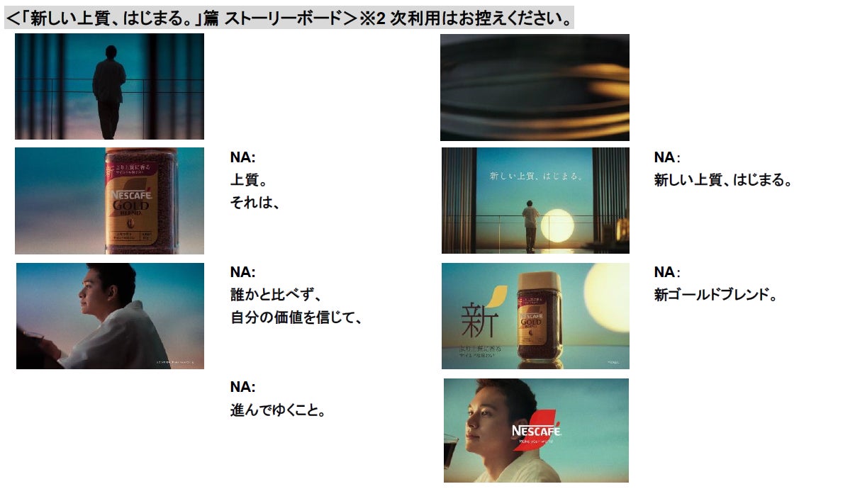 「ネスカフェ ゴールドブレンド」は、製品の改良だけでなく、1970 年から開始した日本を代表する文化人を起用した「違いがわかる男の」キャンペーンを皮切りに、その時代において人々の憧れとされるような生き方や価値観に焦点をあて、「上質」をキーワードにコミュニケーションを展開してきました。このたび放映を開始する「ネスカフェ ゴールドブレンド」の新CMは、変化し続ける世界における「上質」の再定義をテーマにしています。各々の価値観を広い視野で捉えることを讃え、物質的な豊かさだけでなく心の豊かさを重視すること、毎日の1杯から新しい上質な体験が始まることを、“新しい幕開け”を象徴する「朝日」を中心に据えて表現しています。