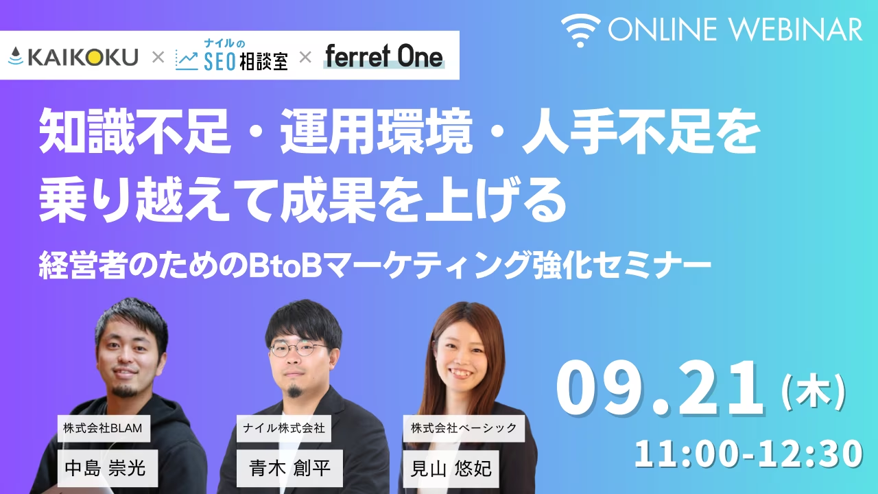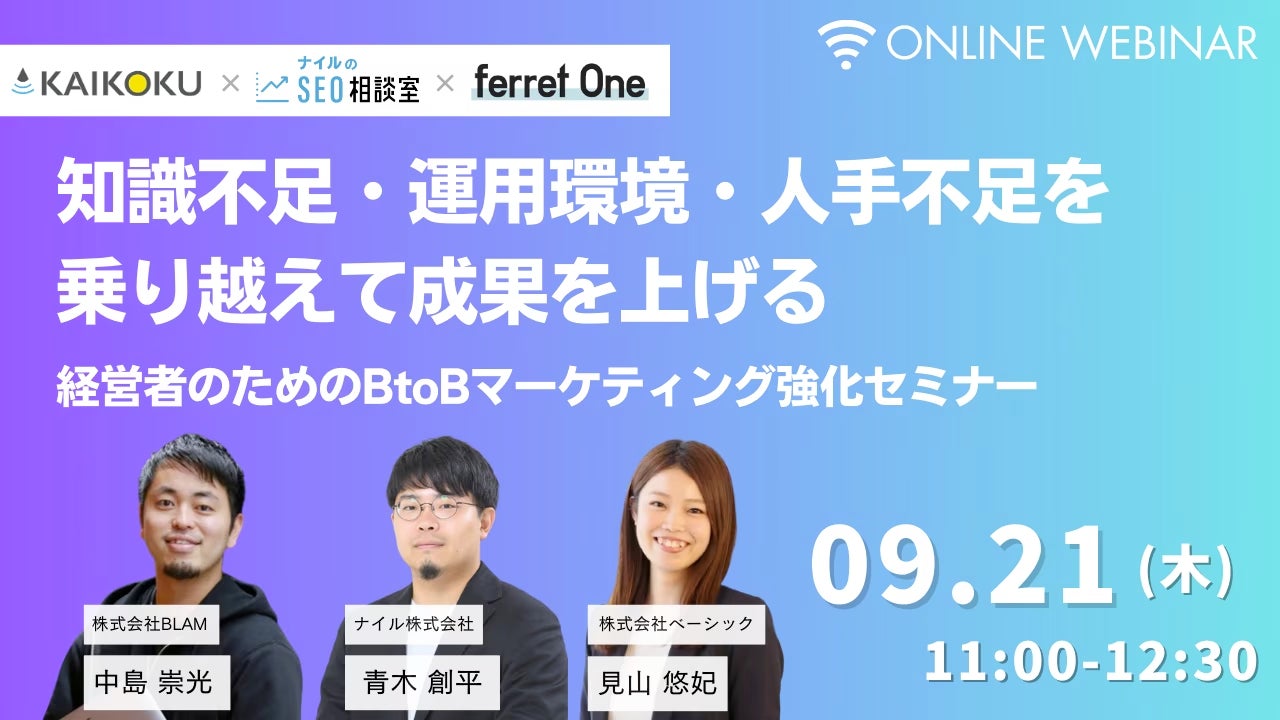 ベーシック、9/21(木)11時よりferret One主催のセミナー「知識不足、運用環境、人手不足を乗り越えて成果を上げる 〜経営者のためのBtoBマーケティング強化セミナー〜」を開催