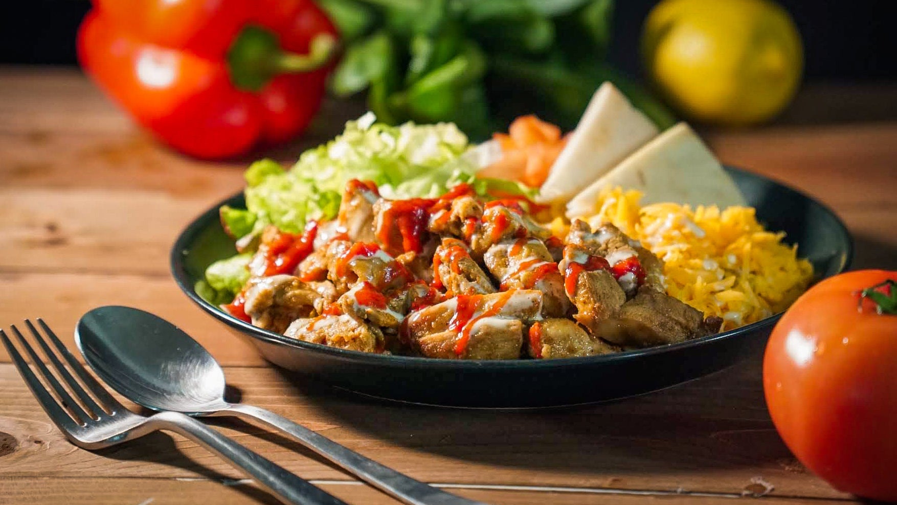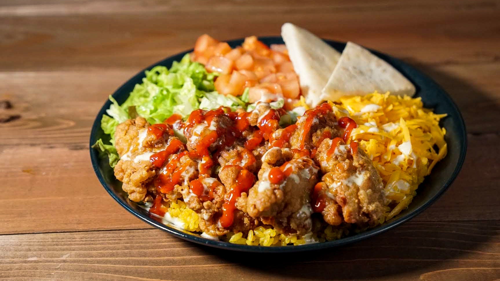 チェルシースタンドは、シェフ塩田洋介がニューヨークで修行中に味わった想い出の味を再現したブランドです。チキンオーバーライスとは、ターメリックライスとスパイシーなチキンに、ヨーグルトベースのホワイトソース、レッドチリソースをかけた屋台料理で、ニューヨークでは定番のストリートフードです。チェルシースタンドのチキンオーバーライスは、地元で行列ができるチキンオーバーライス専門店のレシピを参考に、日本流にブラッシュアップしています。一番のポイントはオリジナルスパイスでマリネしたタンドリーチキン。ご飯は 岩手県産ひとめぼれを和出汁で炊き上げたターメリックライスです。付け合わせには、契約農家から仕入れたトマト、キャベツやピタブレット、チェダーチーズを添えています。国産食材を使用したチキンオーバーライスをお楽しみください。