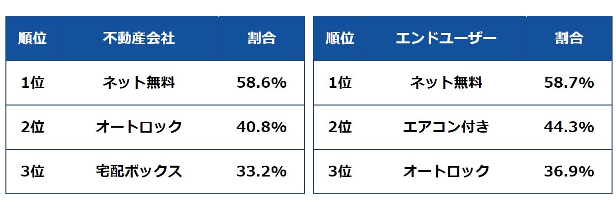 ■付加価値となる設備1位、不動産会社・エンドユーザーともに「ネット無料」