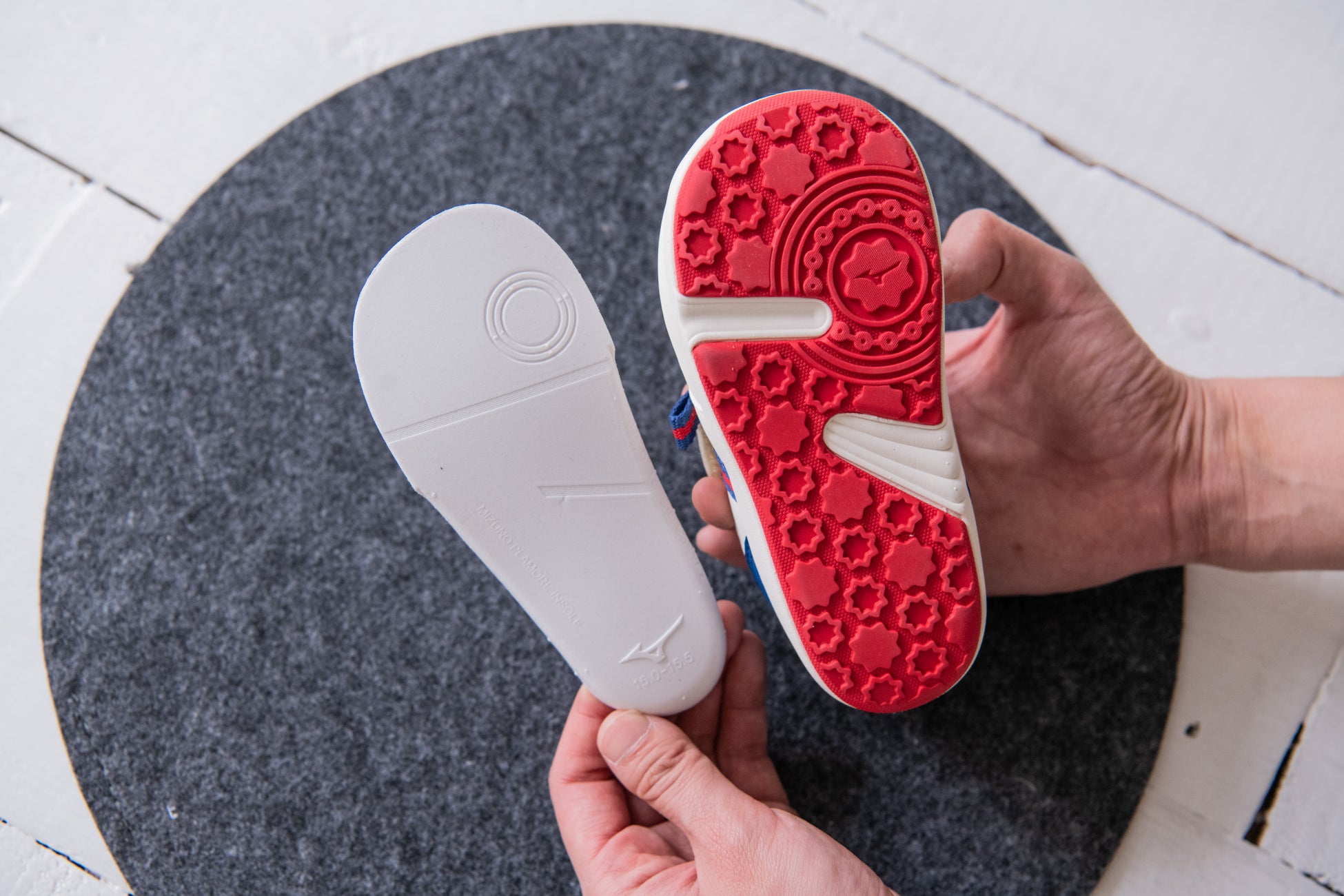 『ミズノ プレモアソール』は、ランニング・インドアスポーツ・フットボール(サッカー)の競技用シューズ開発で培った動きをサポートする技術を採用したソールです。