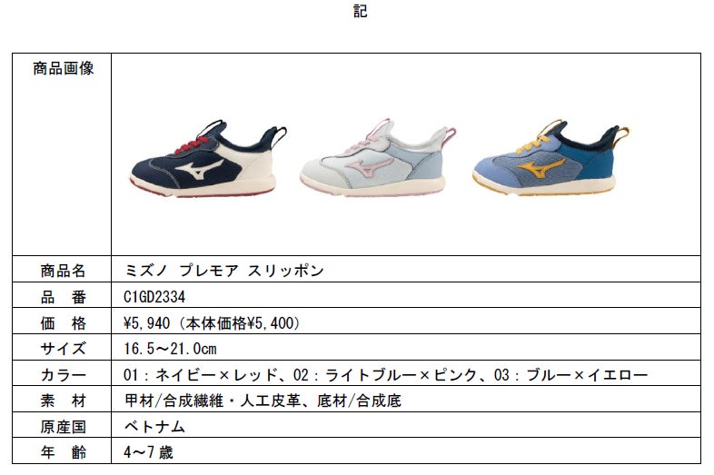 「ミズノ プレモア スリッポン」の販売目標は、7,200足(発売から1年間)です。