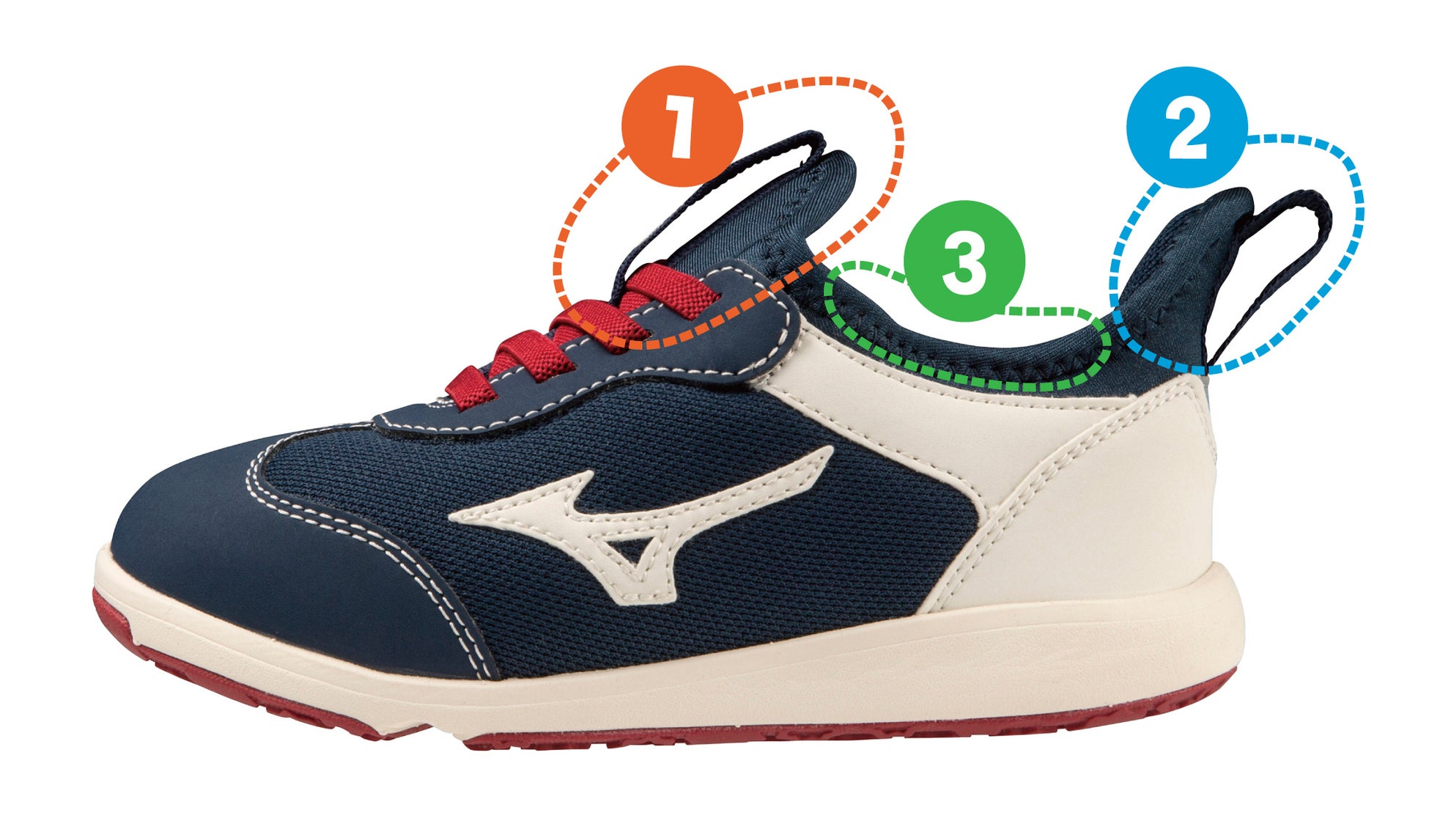 今回発売する「ミズノ プレモア スリッポン」は、簡単に着脱ができるだけでなく、フィット感にも優れているスリッポンタイプです。一人で靴を履けるようになった後、立ったまま靴を脱ぎ履きしたり、座って丁寧に靴を履かない子どもたちが増えていくことに注目しました。とにかく早く靴を履いて遊びに行きたい子どもたちに向けて、ミズノならではのスポーツ競技で培った技術を応用してアッパーを開発しました。