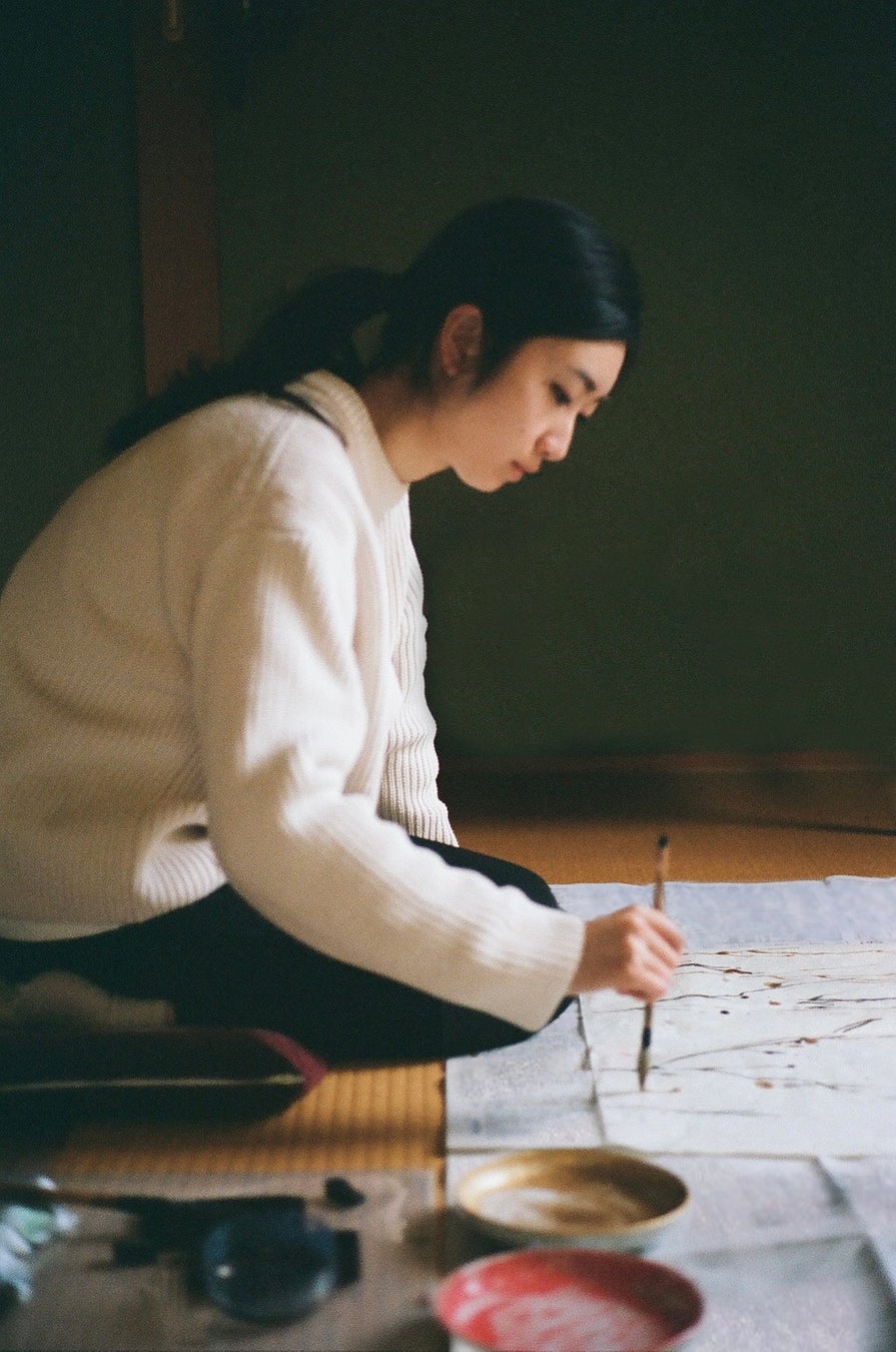 「おのずからなるもの」を主題に、和紙・墨・岩絵具など日本絵画の伝統的な技法や材料を用いて制作を行う。江戸時代の琳派に見られる「にじみ」や「たらしこみ」の技法研究を出発点に、自然(じねん)の思想へと関心を深め、描く行為と画材がもたらす偶発的な現象との往還を通じて、自然との対話を試みている。