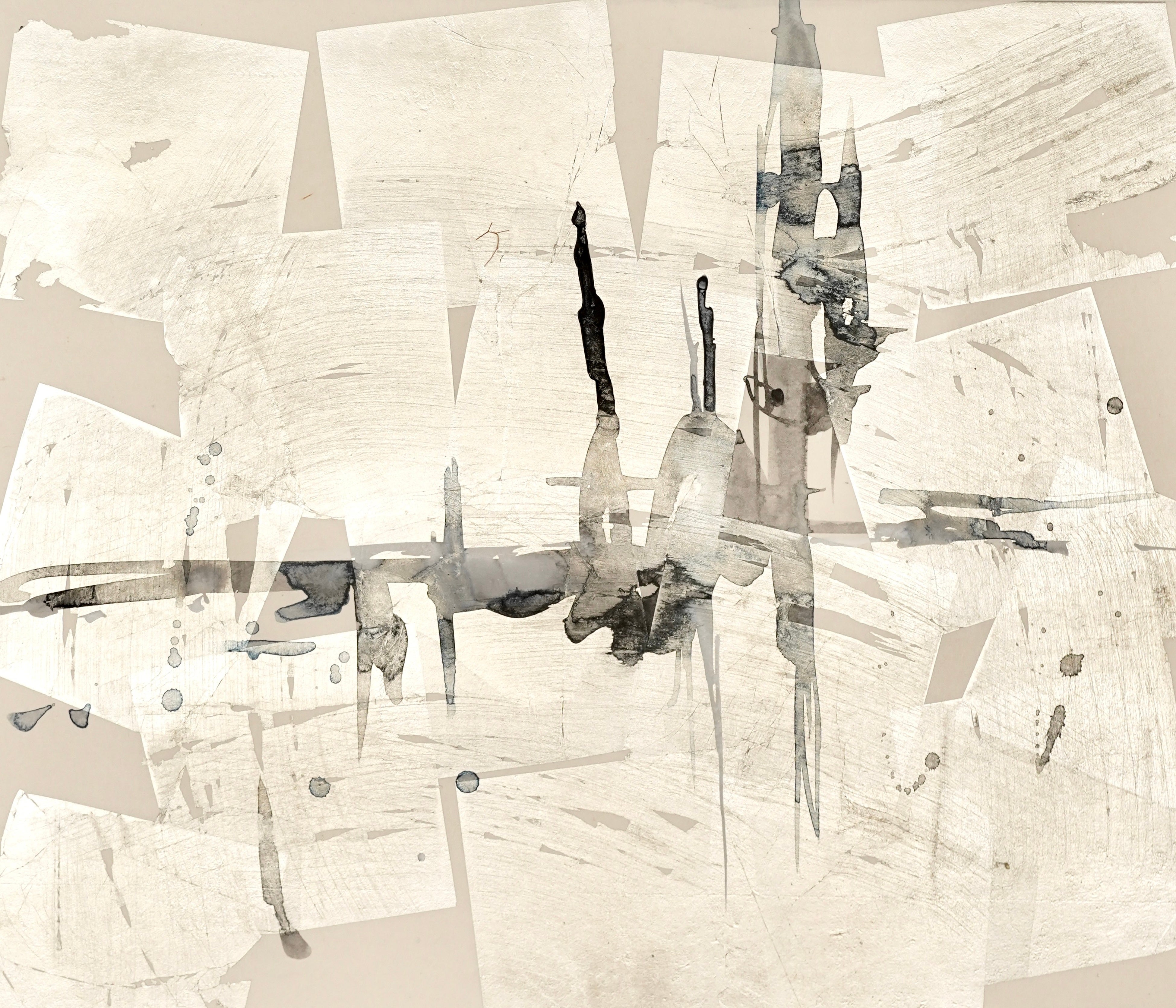 近年は「Sawari」シリーズとして各地を旅し、その土地の空気を受け取りながら内に響く「さわり(ノイズ)」を題材に制作。支持体を現地の地面に直接置き、自然が生み出す痕跡を取り込みながら、即興的に作品を描いている。
