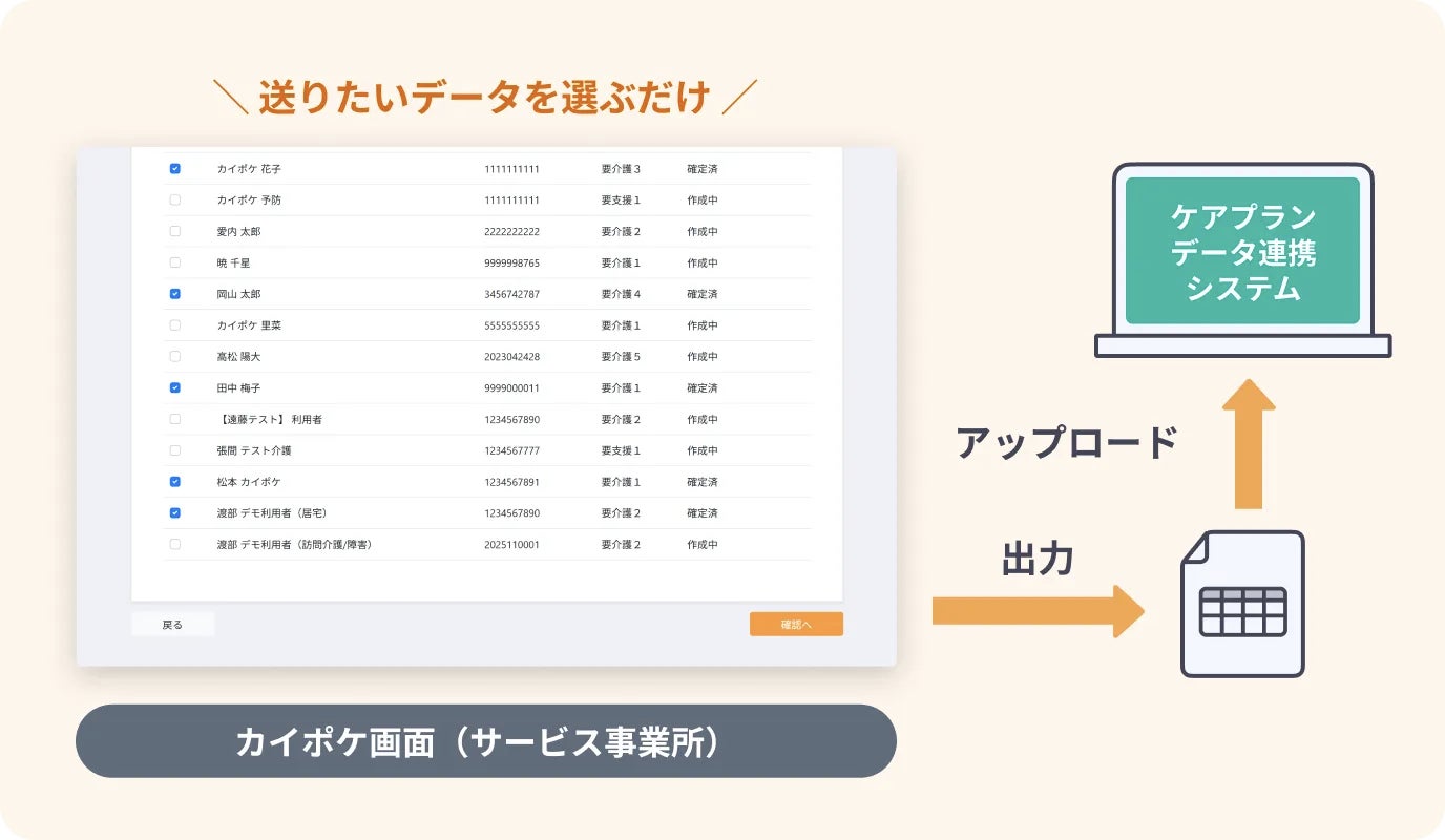 ・ケアプランデータ連携システム対応のCSVデータを出力