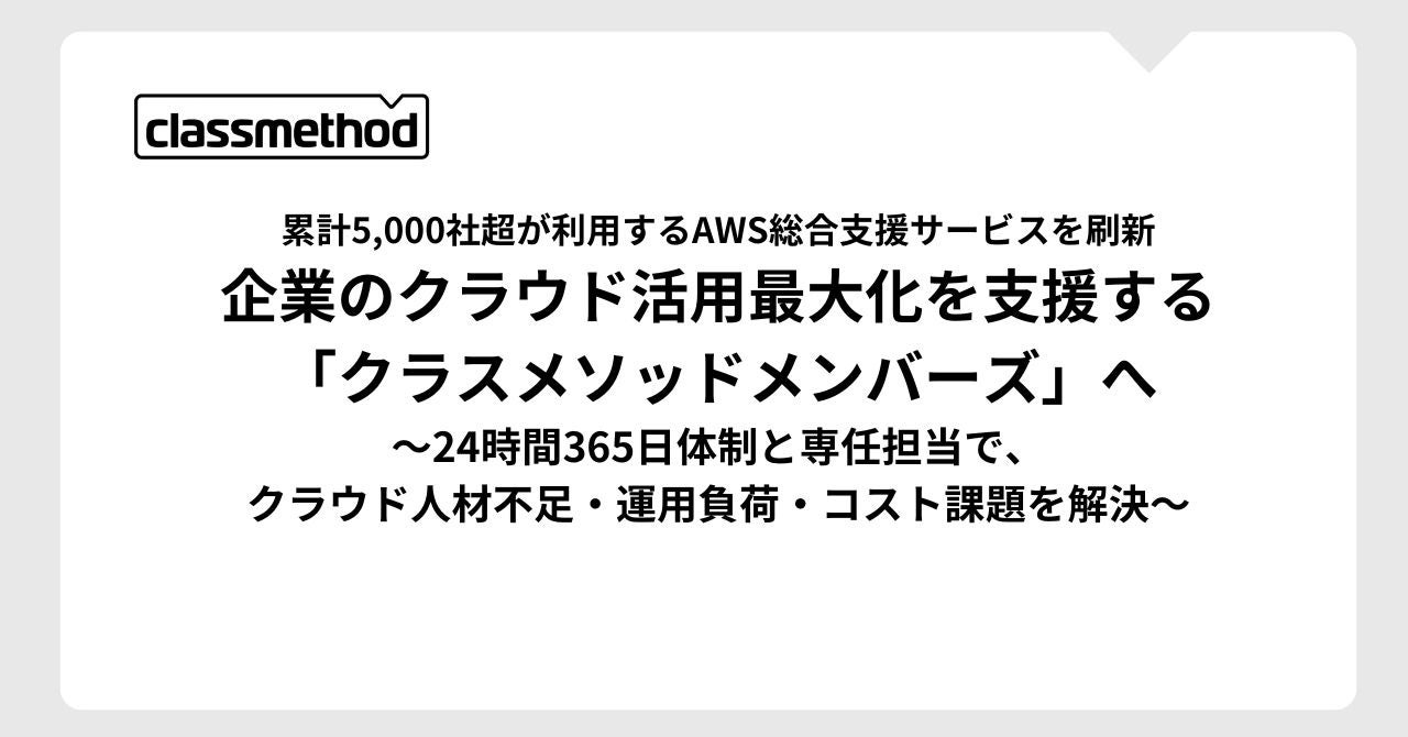 クラスメソッド、累計5,000社超が利用するAWS総合支援サービスを刷新、企業のクラウド活用最大化を支援する「クラスメソッドメンバーズ」へ