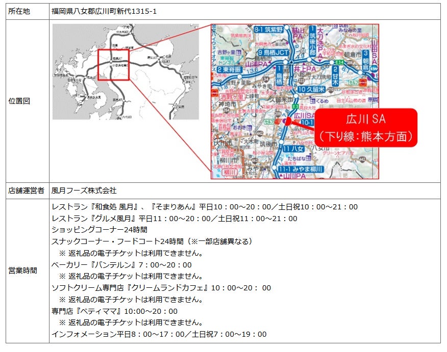 E3 九州自動車道 広川サービスエリア(下り線)で 新しいふるさと納税サービスを開始します!