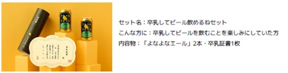 株式会社ヤッホーブルーイングは、2024年3月8日(金)から、結婚・還暦などと異なり一般的には人生の節目と認識されていない、卒乳などの“隠れた節目”をお祝いする「隠れ節目祝いセット」を、公式通販サイトにて販売開始しました。内容は、お祝いの気持ちを込め「よなよなエール」2本と卒業証書がセットになった「卒乳してビール飲めるねセット」「イヤイヤ期卒業乾杯セット」「あなただけの卒業乾杯セット」の3種です。