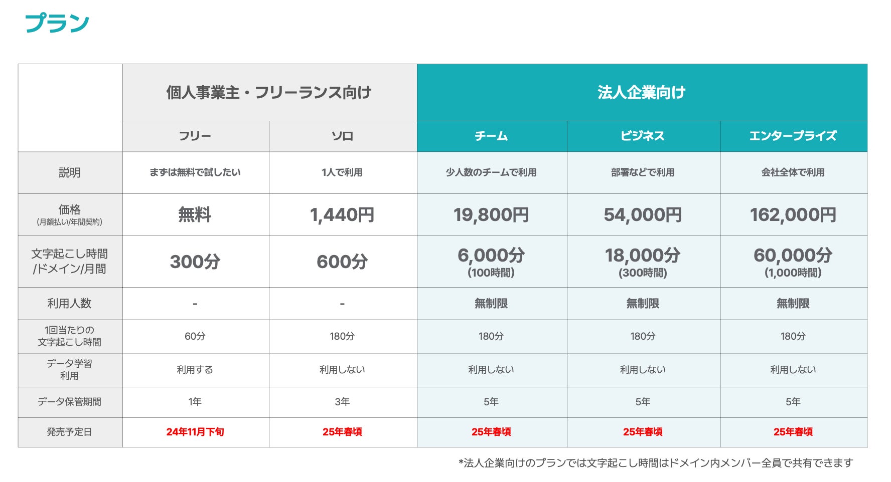 なお、提供開始を記念し、フリープランで文字起こし時間1,000分を利用いただける期間限定キャンペーンを実施する予定です。