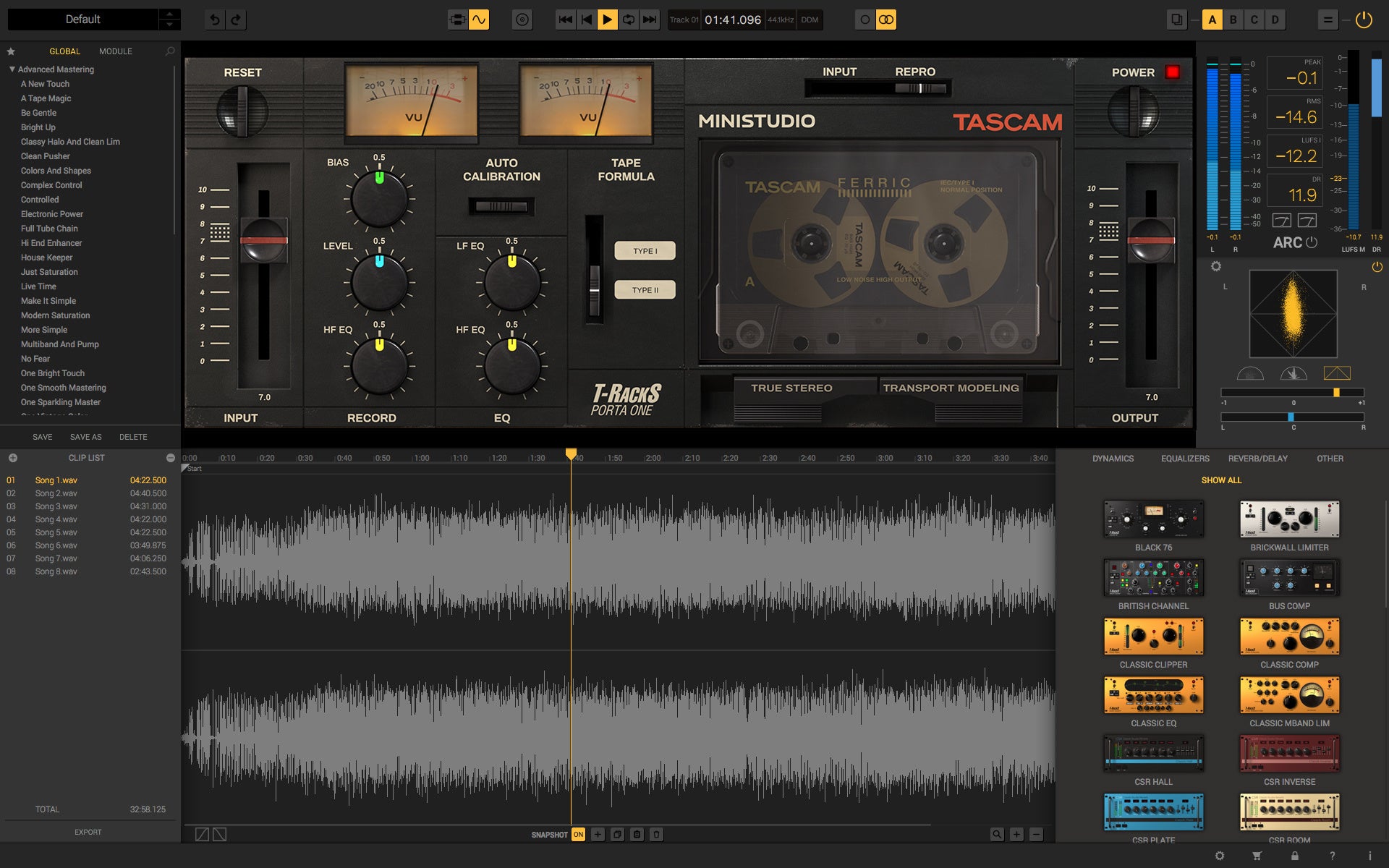 カセットMTRモデリング ソフトウェアIK Multimedia『T-RackS TASCAM PORTA ONE』