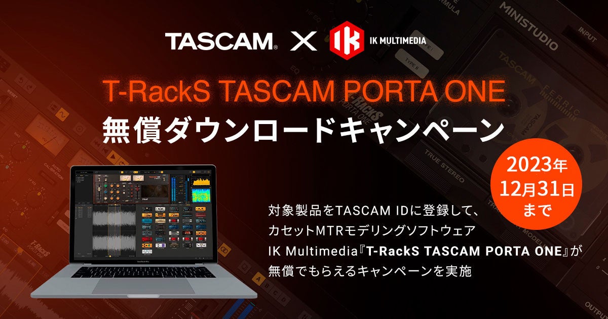 ティアック株式会社 (本社:東京都多摩市、代表取締役社長:英 裕治) は、TASCAM (タスカム) の『Modelシリーズ』をご購入の上、TASCAM IDに製品登録をいただいた方に、ミックス・マスタリング・プラグインのコレクション『T-RackS TASCAM Tape Collection』のラインナップの一つである、IK MultimediaカセットMTRモデリング ソフトウェア『T-RackS TASCAM PORTA ONE』がもらえるキャンペーンを実施いたします。