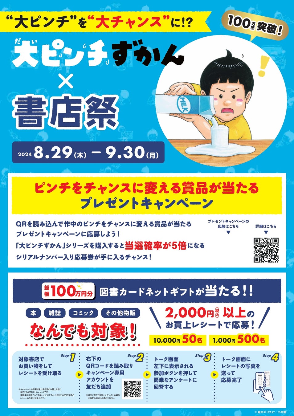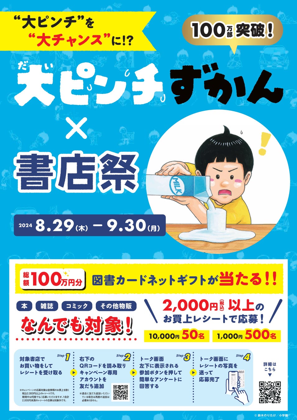 図書カードネットギフトやピンチをチャンスに変えるプレゼントが当たる!「“大ピンチ”を“大チャンス”に!? 100万部突破『大ピンチずかん』×書店祭」8月29日より全国の約800書店で順次開催