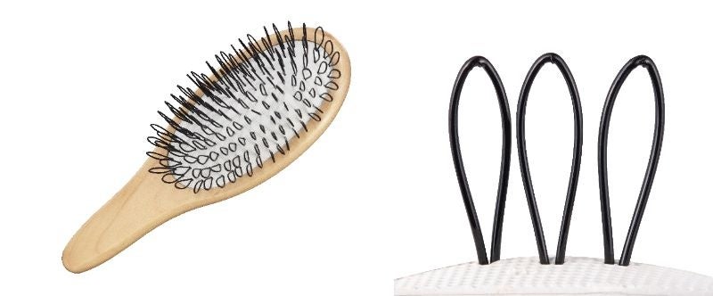 特徴的なループ形状のピンは、圧力を吸収して髪の絡まりをほぐしながら頭皮を心地よくほぐします。握り込みやすいハンドル形状なので、ブラシをしっかりと持ってブラッシングやマッサージを行うことができます。