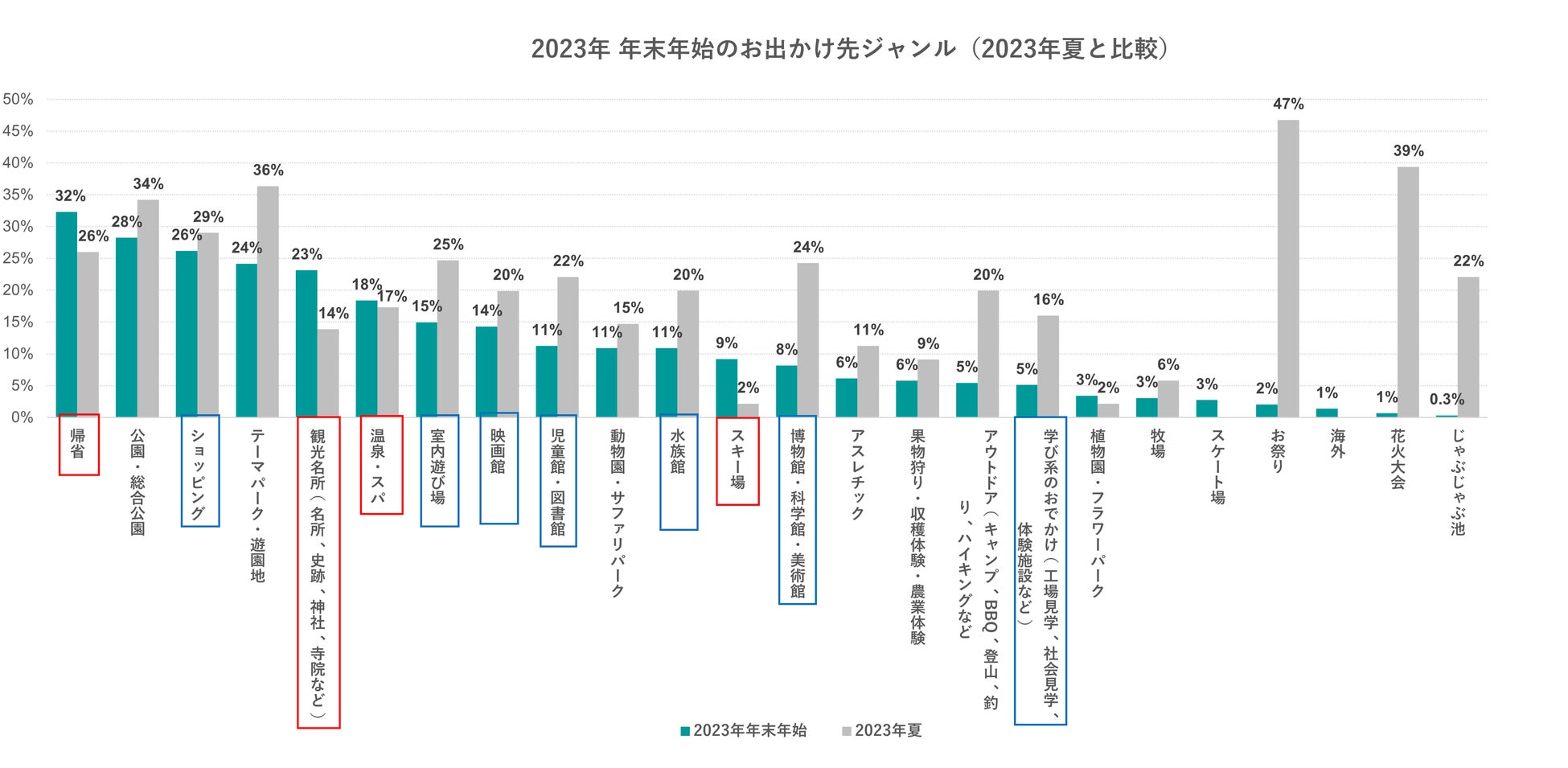 2023年年末年始の人気お出かけ先は? 帰省や家族時間を優先する人が多数―レジャー費や宿泊料金の高騰の影響か/いこーよ総研ユーザーアンケート