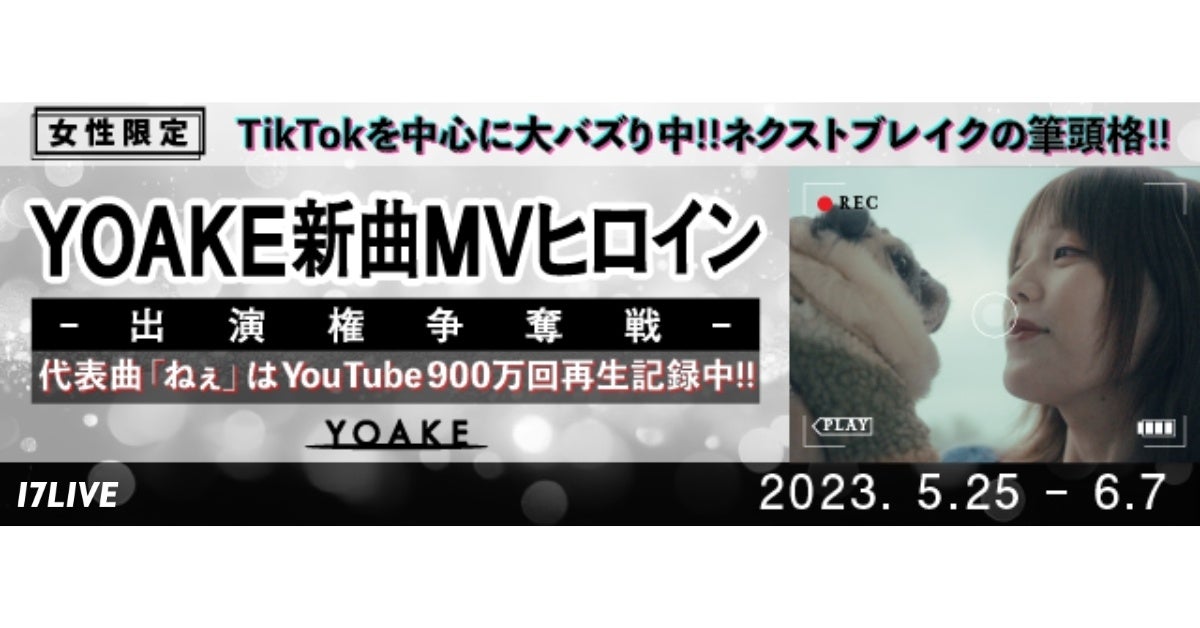「ねぇ」を中心にTikTokで大バズり中!メジャーアーティスト「YOAKE」の新曲MVに出演できる、『YOAKE新曲MVヒロイン-出演権争奪戦-』本日より開催!