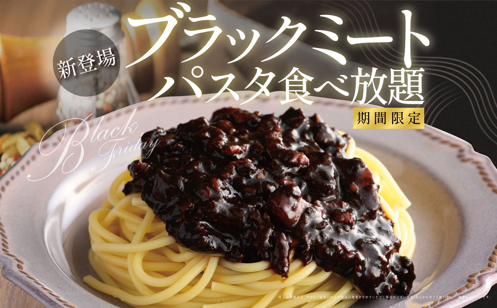 この度、2022年11月18日(金)~ 2022年11月27日(日)のBLACK FRIDAY期間にて『ブラックミートパスタ』が食べ放題に新登場いたしました!