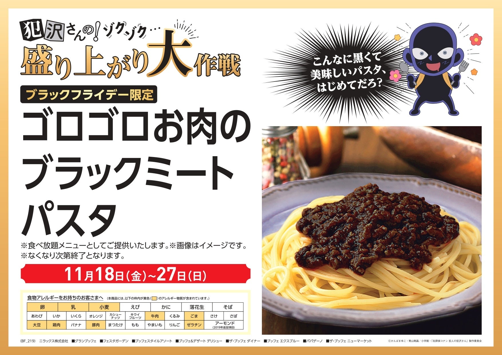 【食べ放題に特別メニューが登場!】ニラックスブッフェ26店舗にてBLACK FRIDAY期間の特別ブラックメニュー『ブラックミートパスタ』が新登場!更に!とってもお得なクーポンキャンペーンも同時開催!