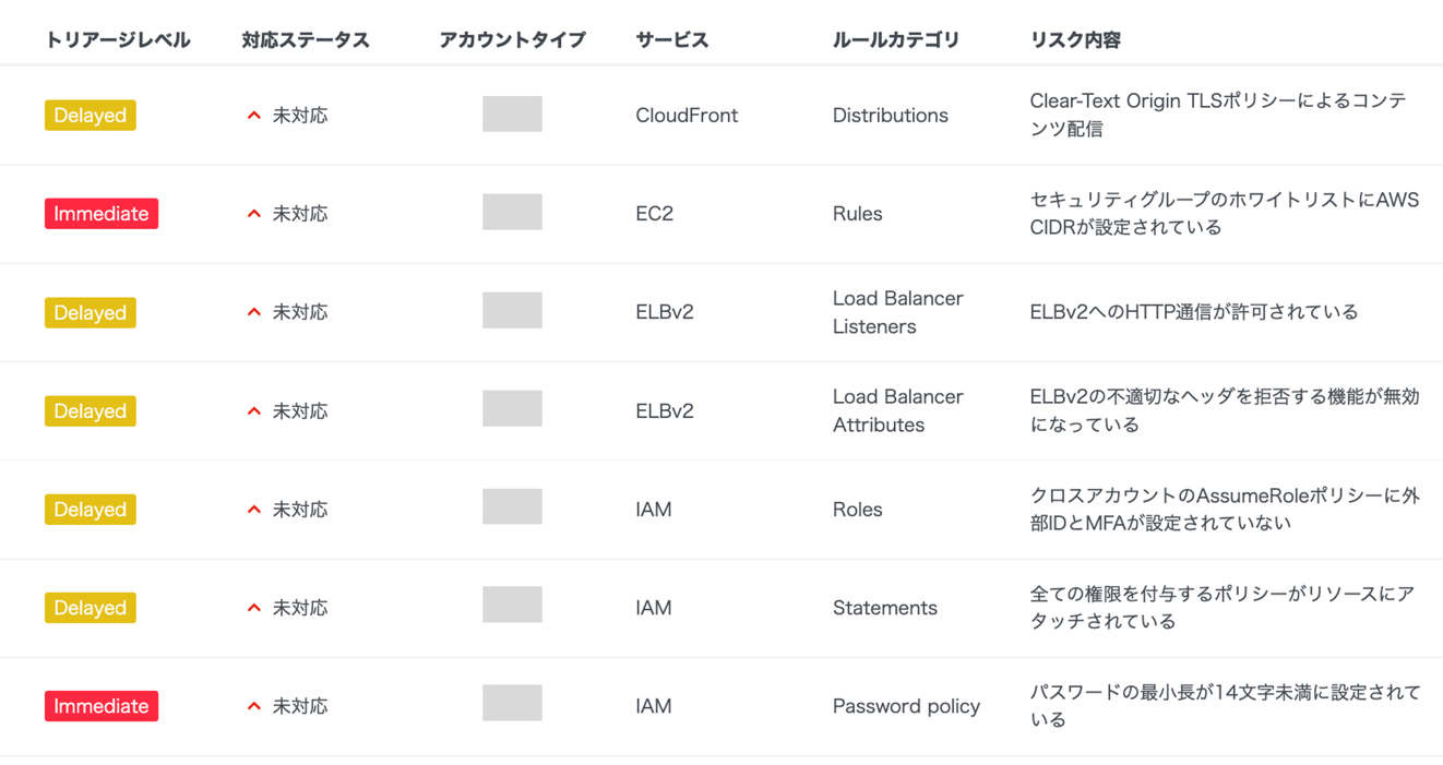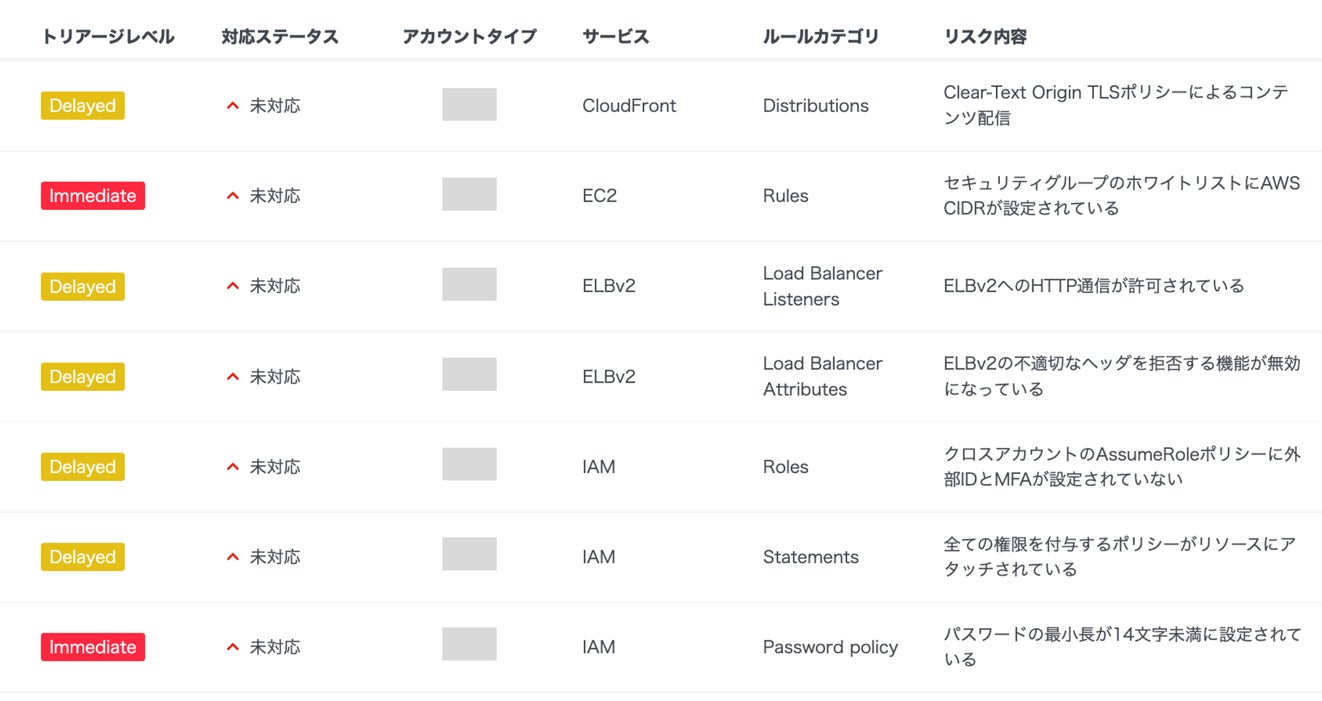 グローバル基準で策定されているCIS Benchmarkや提供事業者毎のベストプラクティスルール集をベースに、ルールセットを網羅的にデータベース化。ITシステムのクラウド構成をスキャンし、ルールデータベースと突合することで設定不備を自動検知します。検知結果は緊急度に応じて分類されるため、対応フローが容易に構築可能です。ルールセットはyamoryのセキュリティ専門チームが定期的にメンテナンスおよびスキャンを実施することで、ルールやクラウド構成に変更があった場合にも設定不備を検知でき、迅速な対応を実現します。