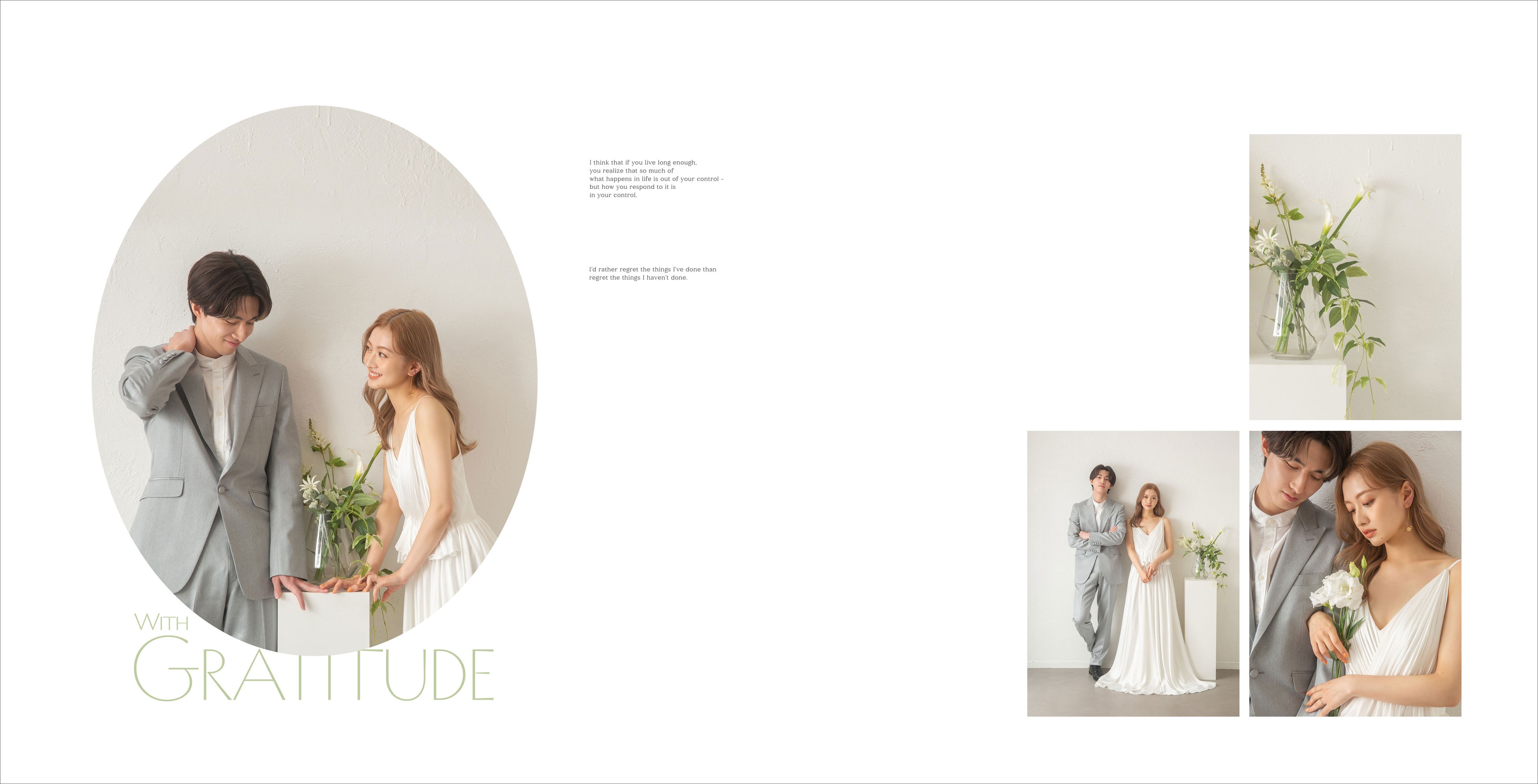 aimのブライダルアルバムで今までにはなかった写真の切り抜きや、ラインを利用して遊びを取り入れた新しいデザインスタイル。