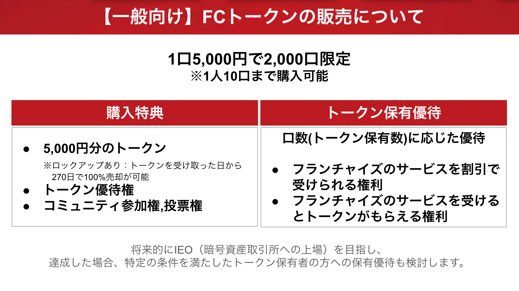さらにこのプロジェクトを通してフランチャイズ事業が成長し収益が出た場合、収益の一部で買い支えて中長期的にトークンの価値(=価格)を上げていきたいと考えています。