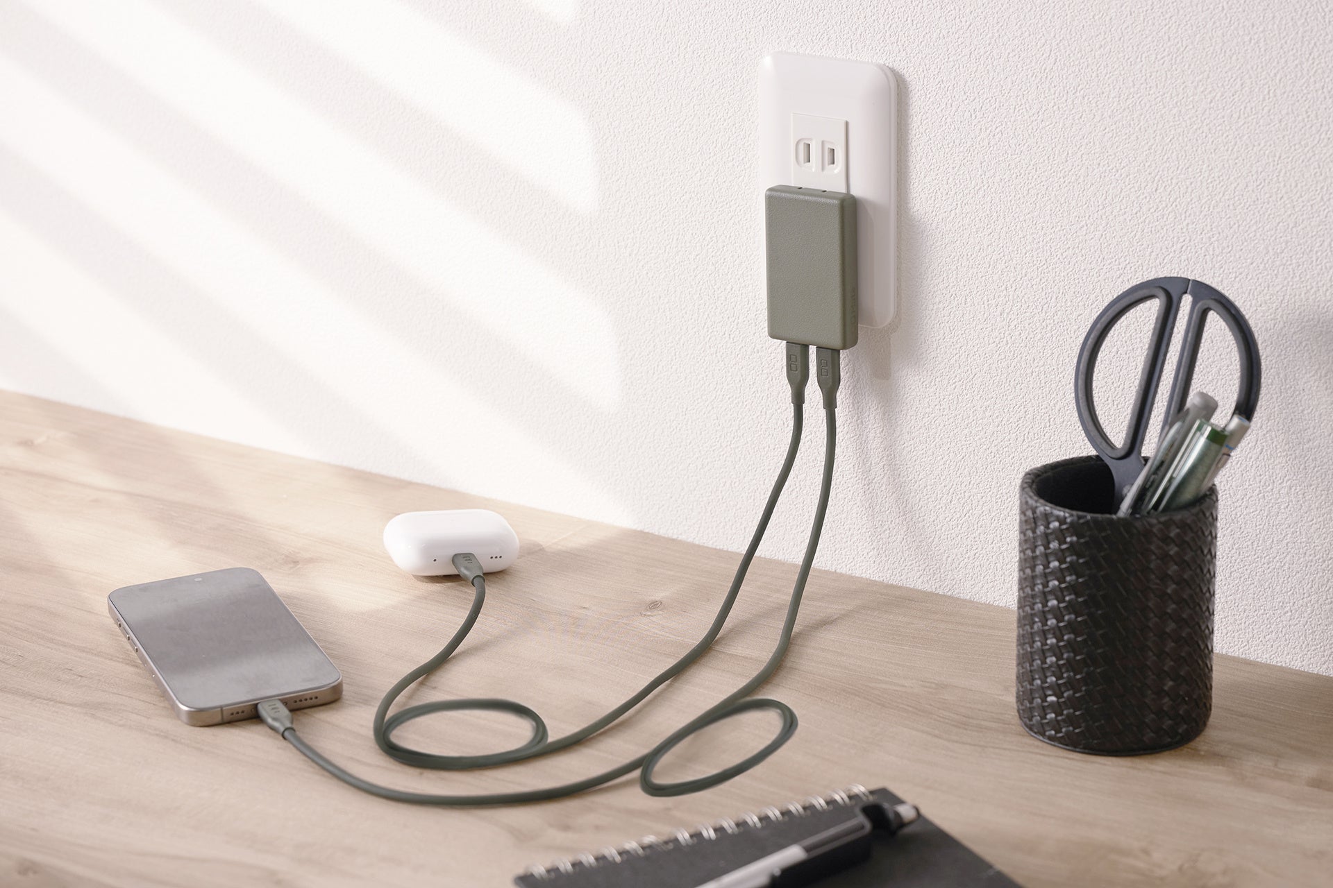 自宅やオフィスでも、カフェなどの外出先でも、コンパクトに持ち運び、パワフルにデバイスを充電してくれます。