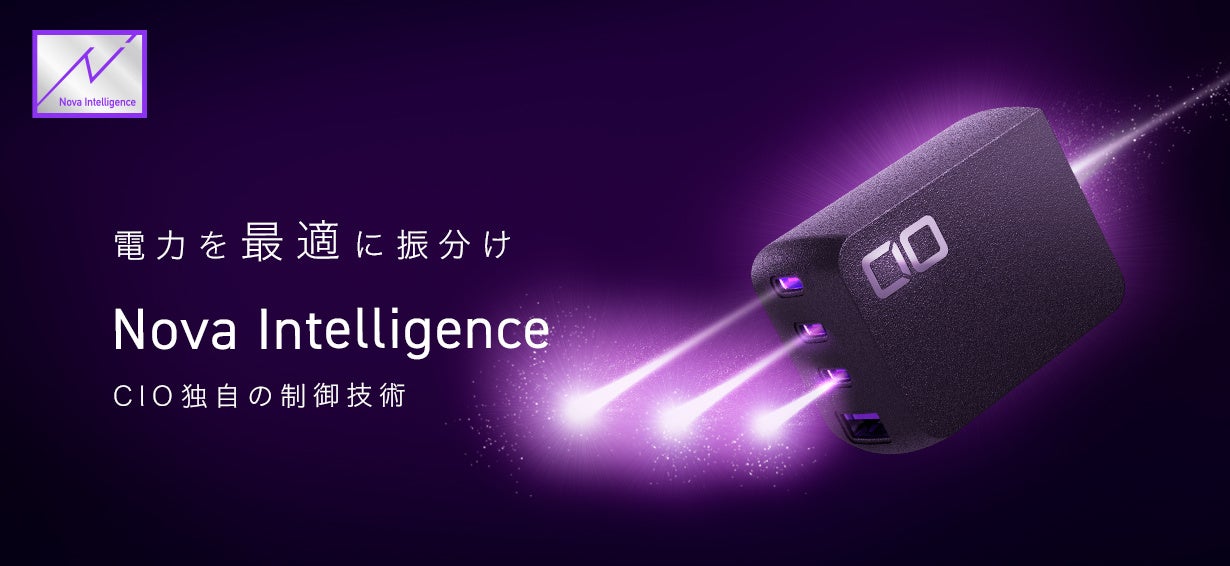 同時充電の際に各ポートの最大出力の上限や割り当てW数が決まっている製品が多い中、CIO独自制御技術"Nova Intelligence"は接続されたデバイスに合わせた最適な電力を瞬時に判別。ポートの差込口によりデバイスを選ぶ必要がありません。