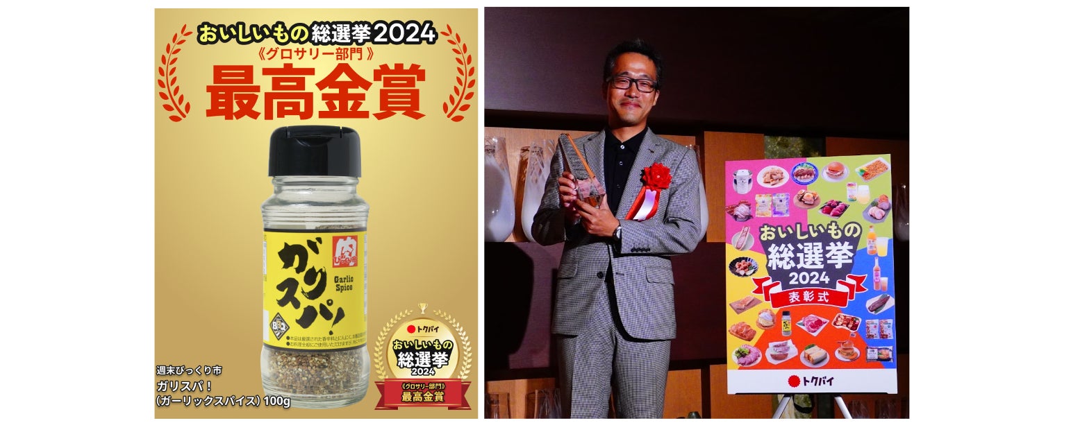 同じく「週末びっくり市」のオリジナルスパイス「ガリスパ!(ガーリックスパイス)」もグロサリー部門で最高金賞を獲得しました。